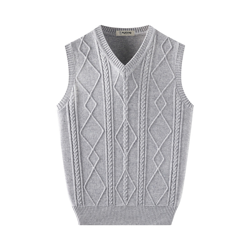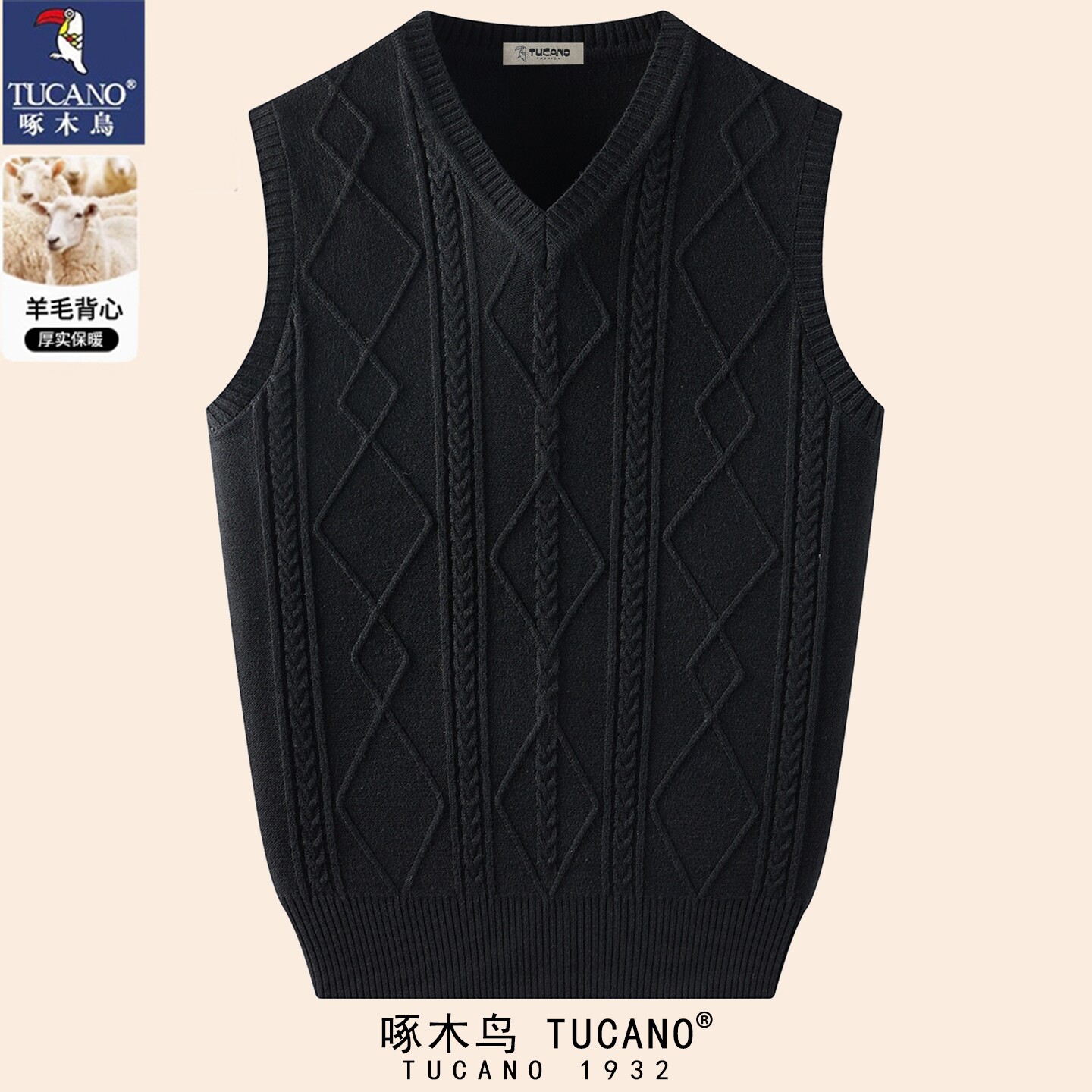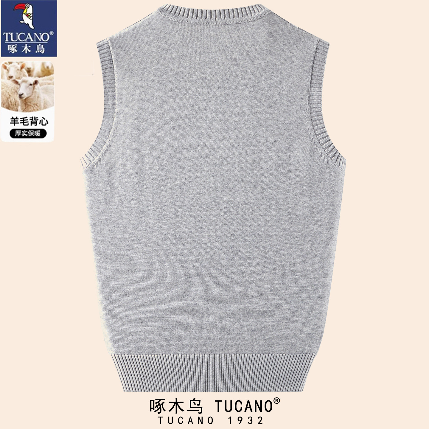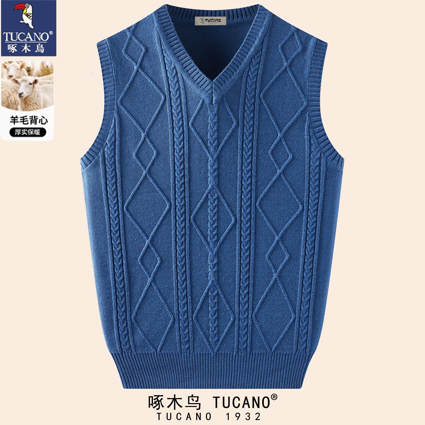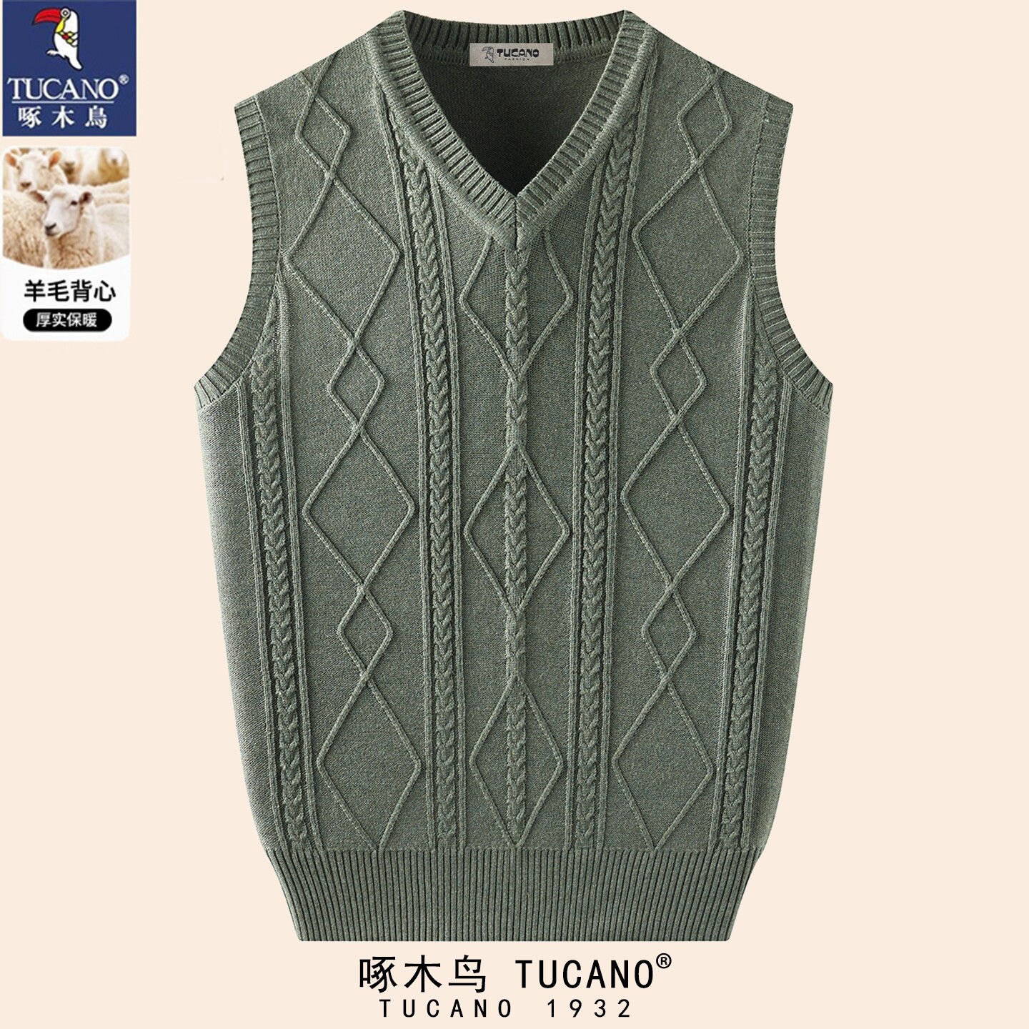 啄木鸟羊毛背心男套头坎肩中老年马甲秋冬无袖毛衣V领针织打底衫