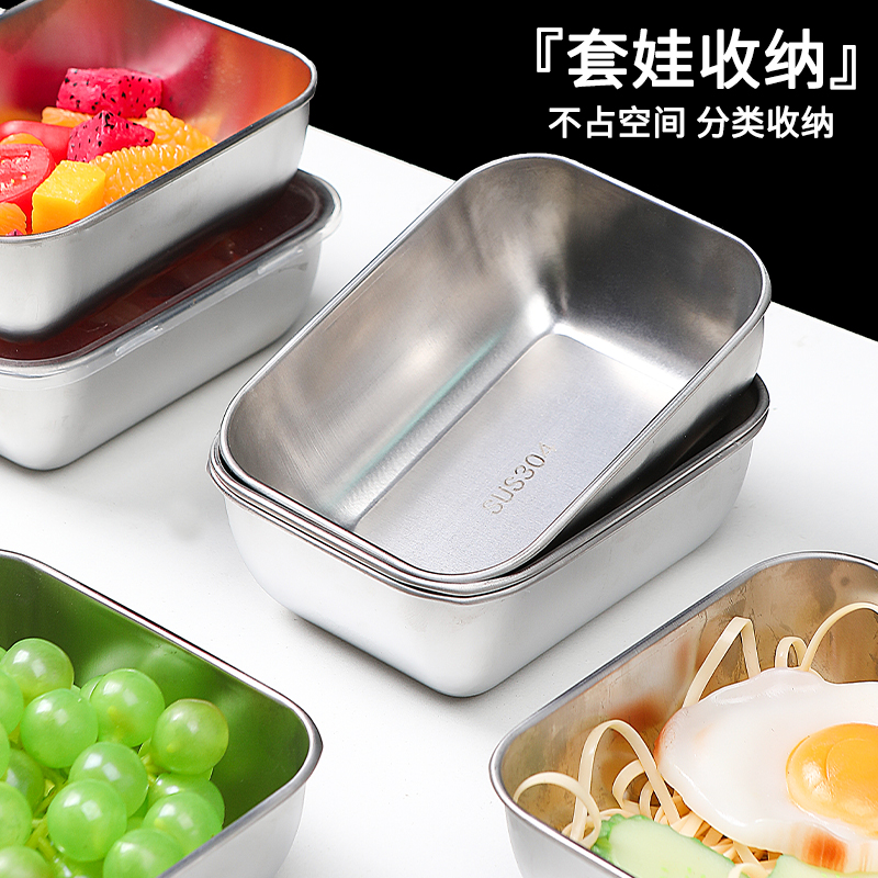 304不锈钢保鲜盒餐用长方形盘带盖冰箱食物收纳盒冷冻盒子大容量