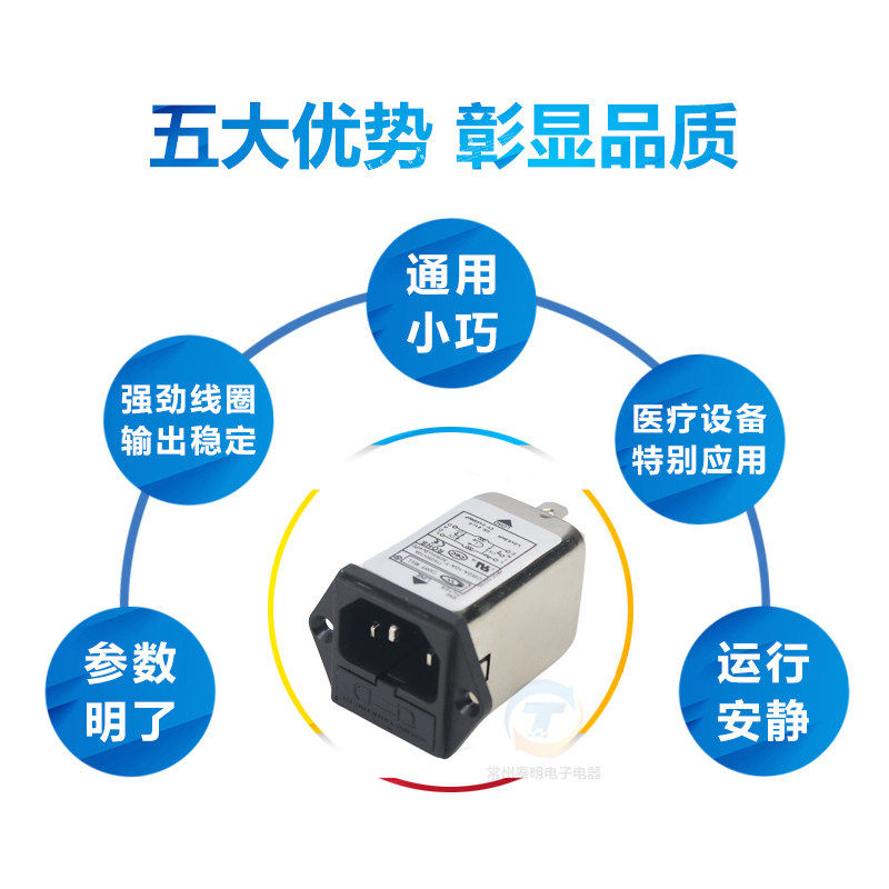 EMI单级单相电源滤波器净化插座带6A保险丝220V抗干扰CW2A-10A-T