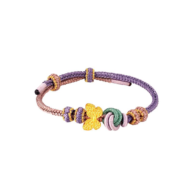 梦金园黄金蝴蝶手链女5D转运珠足金编织手饰手绳送女友生日礼物