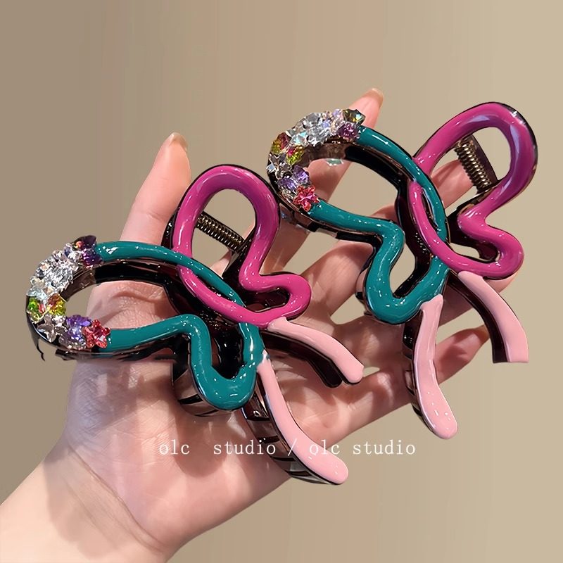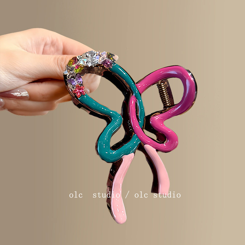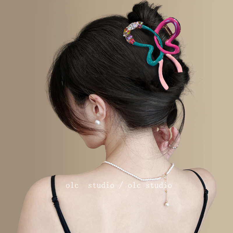 色彩纷蝶!多巴胺水钻蝴蝶结抓夹女高级精致盘发发抓旅行发卡拎环