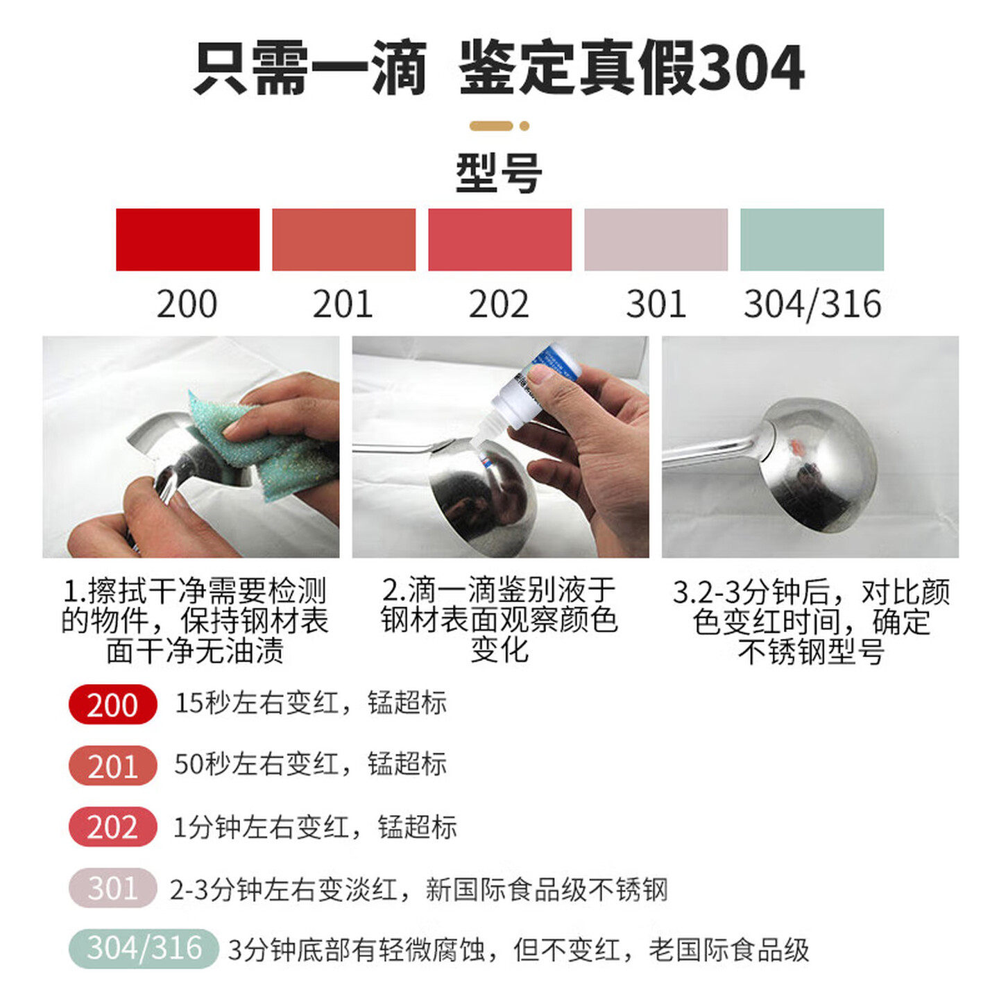 304不锈钢检测液鉴别试剂识别化验药水锰含量316测试识别鉴定剂