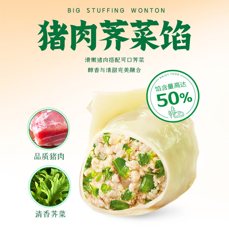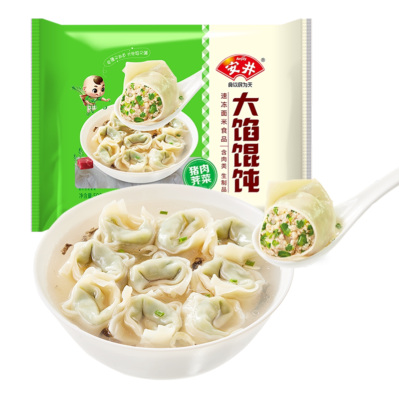 【79元选4件】安井 新品猪肉荠菜大馅馄饨500g早餐半成品速食水饺