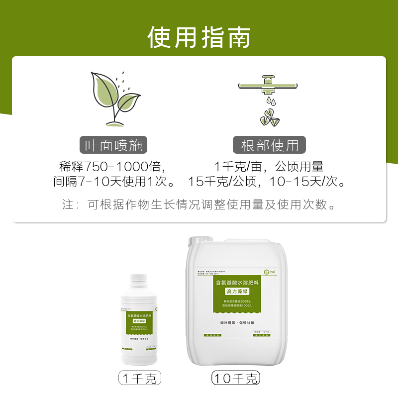 杜高海藻氨基酸水溶肥绿叶壮苗叶绿素果树蔬菜一喷绿氨基酸叶面肥