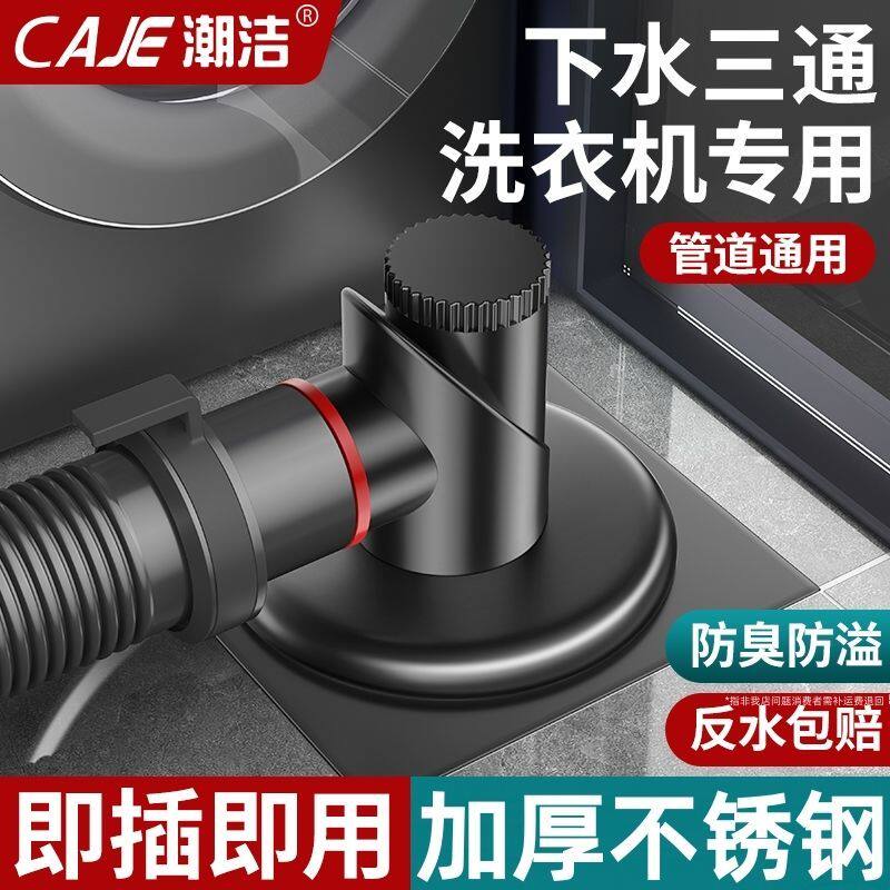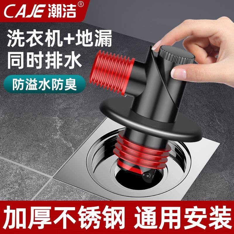 潮洁洗衣机下水管地漏接头防臭防溢两用三通盖卫生间排水管道专用