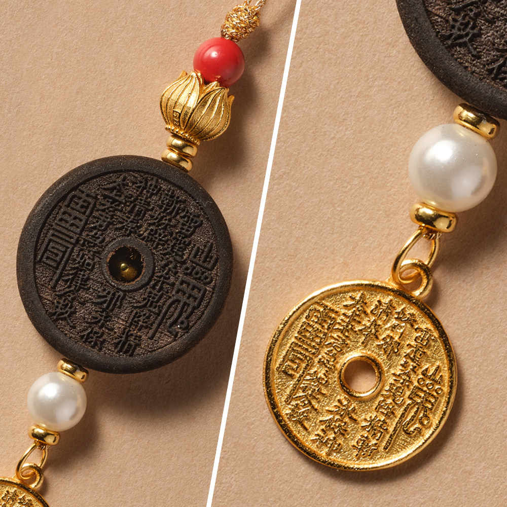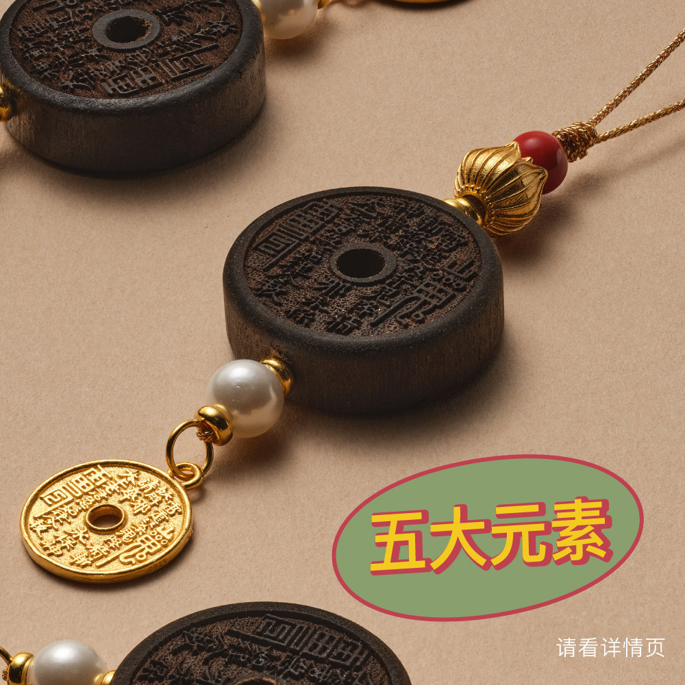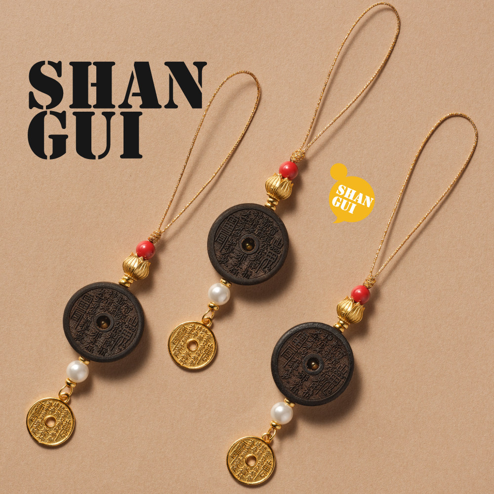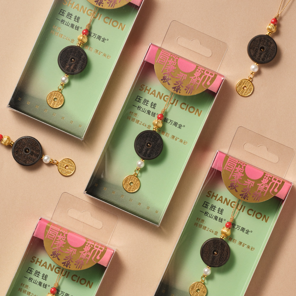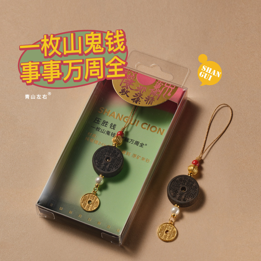 山水织间山鬼花钱道家八卦朱砂925银平安挂件手机挂包挂饰品礼物
