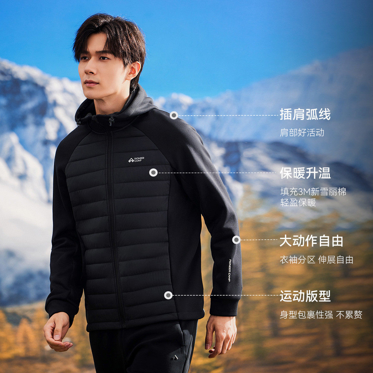 拓路者3M新雪丽运动棉服男装秋冬保暖夹棉夹克薄棉衣休闲连帽外套