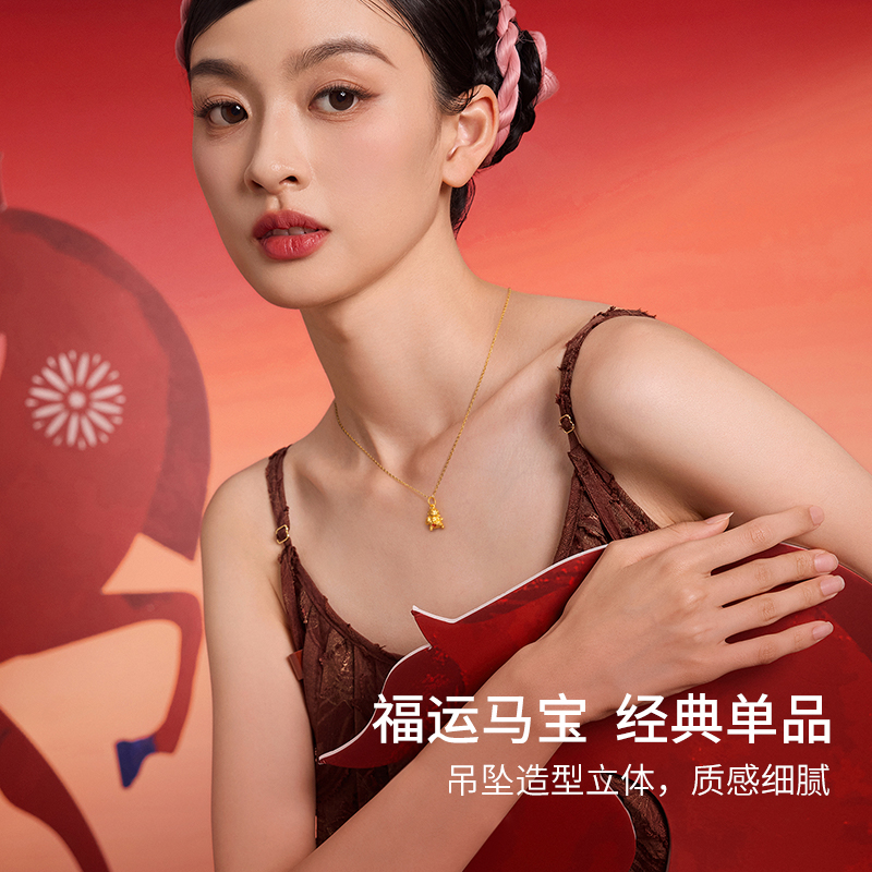 周六福5d硬金定价黄金吊坠女马上封猴生肖吊坠黄金生肖马圣诞礼物