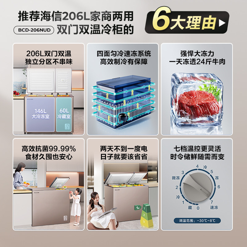 海信206升冰柜双温家用小型冷藏冷冻两用冷柜大容量商用囤货冰箱
