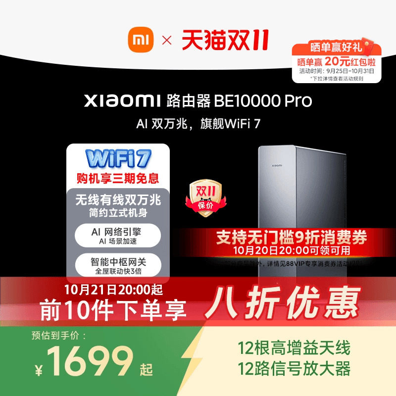 【新品上市】Xiaomi路由器BE10000 Pro 小米官方旗舰店无线有线大户型双万兆AI 场景加速全屋智能中枢路由器