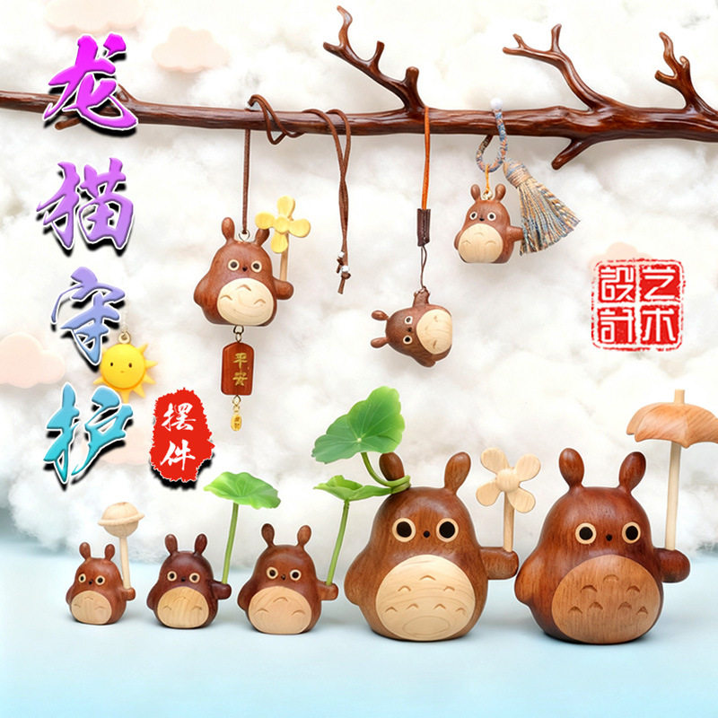 乌檀木实木木雨伞大龙猫家庭摆件家居酒柜电视柜木艺办公室装饰品