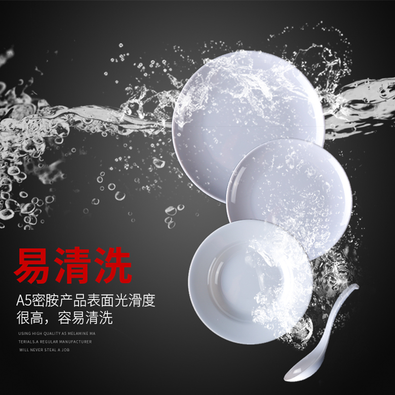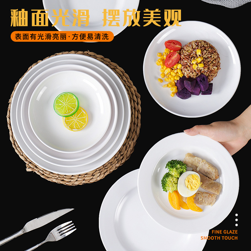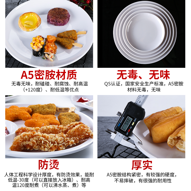 自助餐盘白色菜盘圆形盘子仿瓷鱼盘浅盘快餐餐具骨碟塑料密胺圆盘