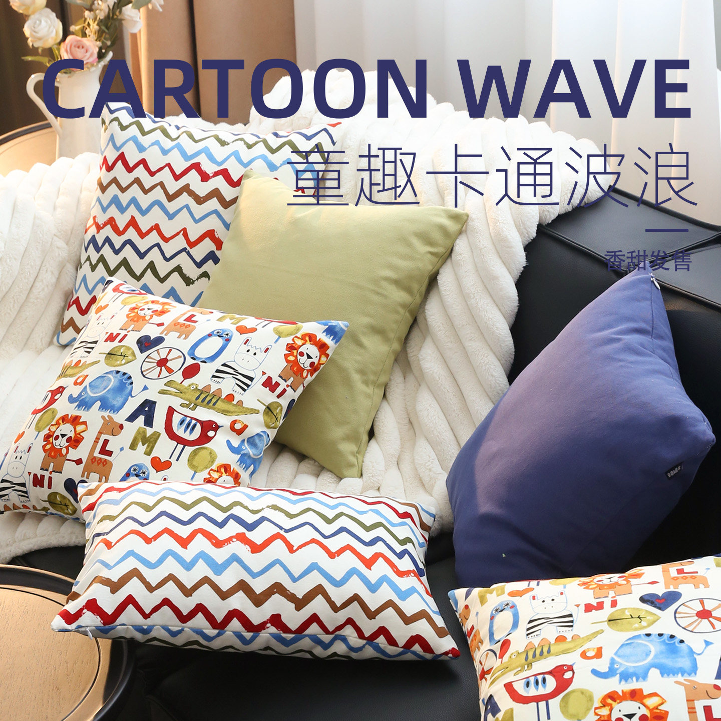 儿童卡通动物抱枕套客厅沙发靠垫套卧室飘窗靠枕套纯棉粗布靠垫套