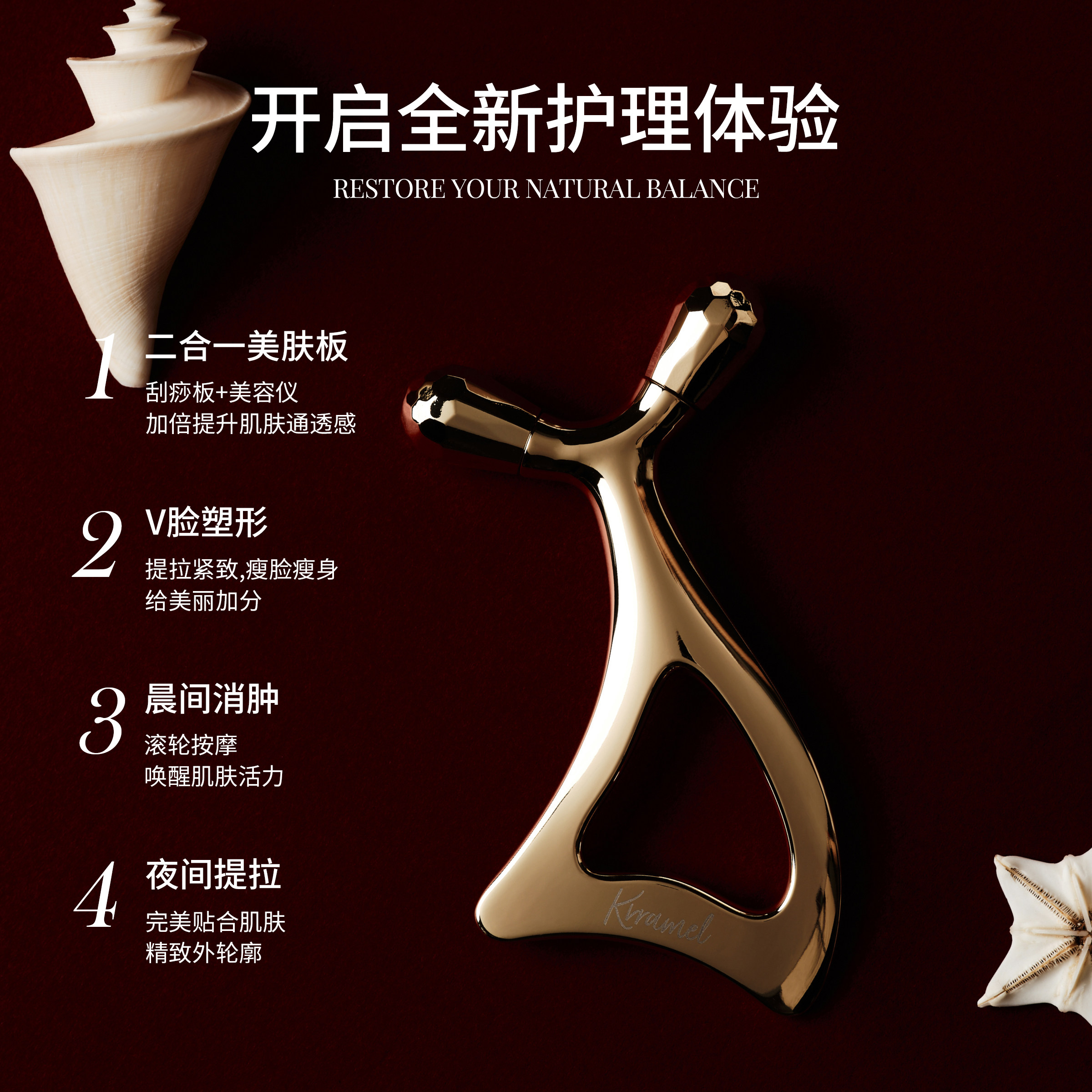 KRRAMEL面部刮痧板脸部提拉紧致神器美容仪按摩刮疗片/板按摩滚轮
