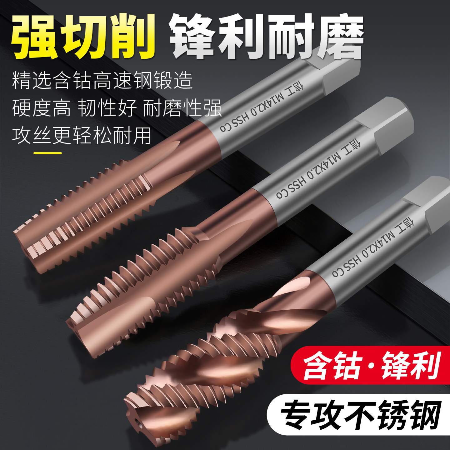 含钴机用丝锥细牙丝攻不锈钢攻丝攻牙专用螺旋直槽先端钻头高硬度