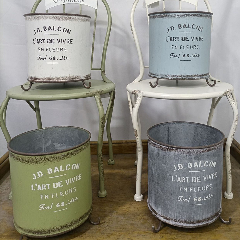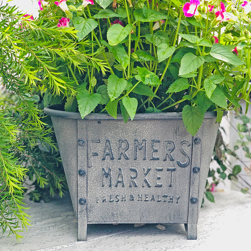日式铁皮花盆户外花园复古花器庭院布置阳台杂货植物花桶装饰品