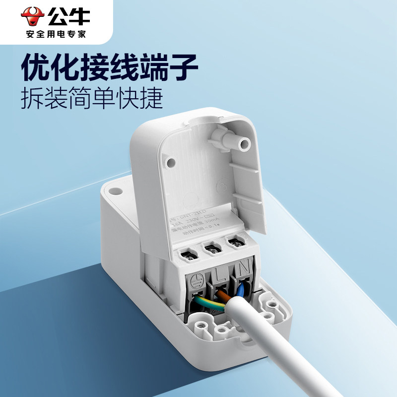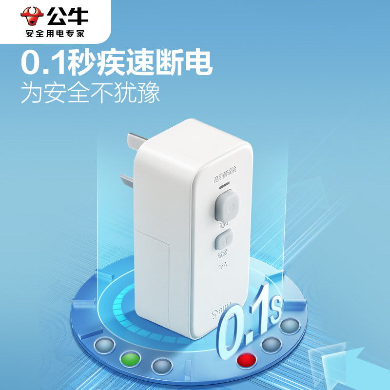 公牛热水器漏电保护插头16A家用4000W大功率开关漏保防触电保护器