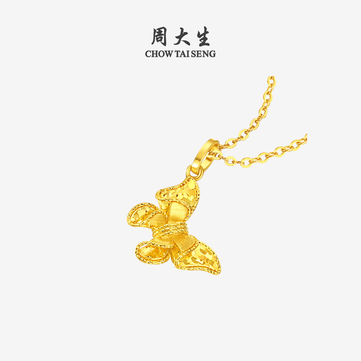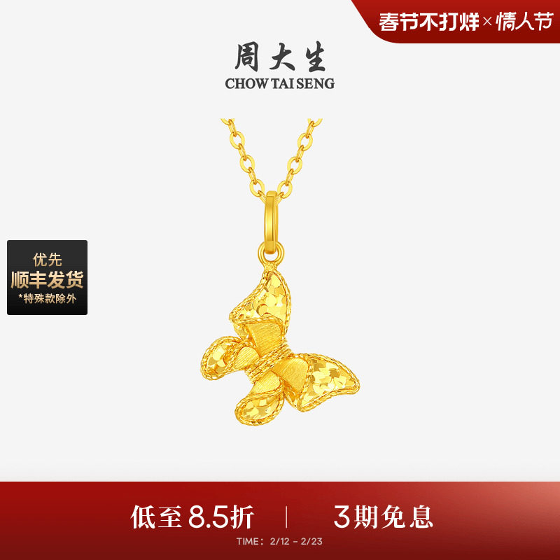 周大生黄金吊坠女5G足金梦幻仙蝶项链闪耀蝴蝶挂坠生日礼物送女友