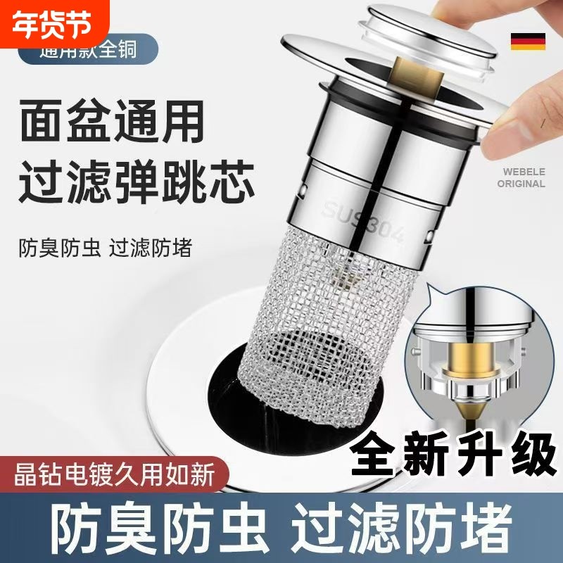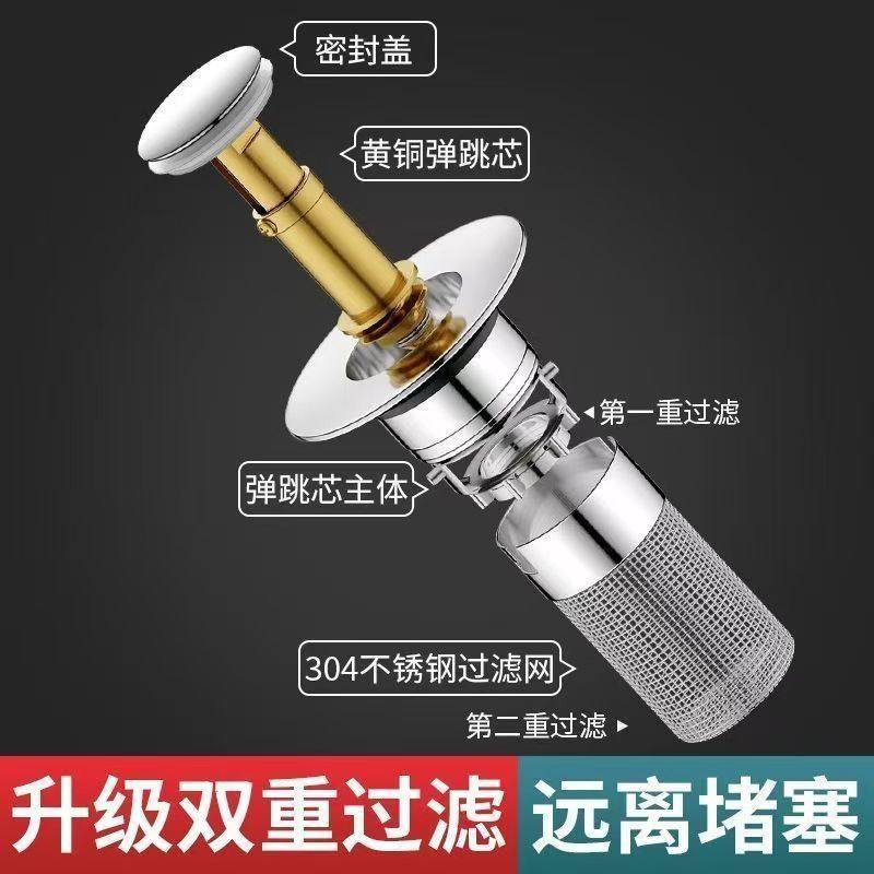 面盆按压式弹跳芯下水器排水过滤防堵加厚铜芯陶瓷大盖脸盆配用件
