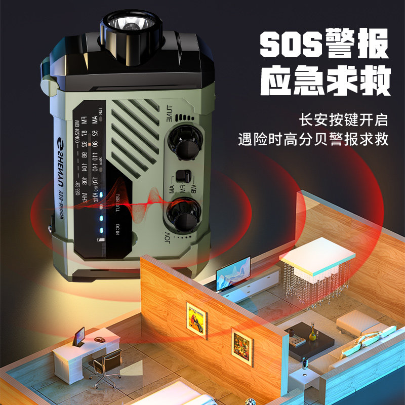 收音机太阳能手摇发电应急手电筒强光超亮多功能救援野外生存装备