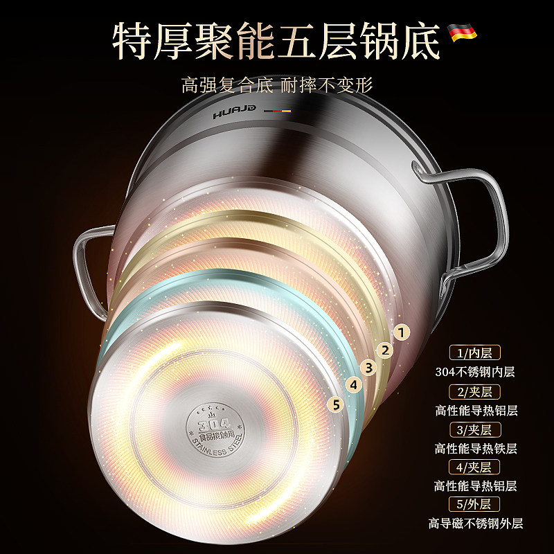 【小型蒸锅】华际达2026新款不锈钢加厚蒸煮锅一体电磁燃气灶专用