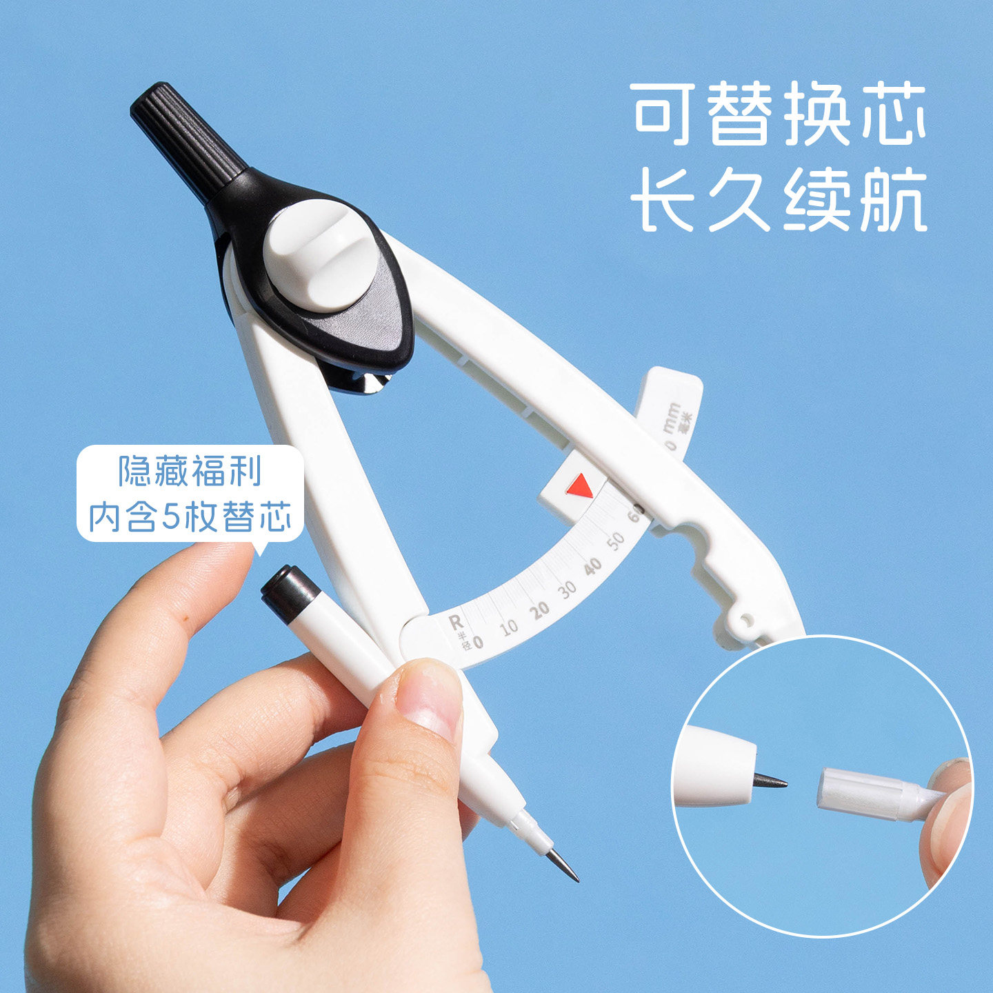 三年二班圆规小学生专用数显带刻度按动初中生多功能锁距尺规替换笔芯高中专业绘图套装儿童制图工具画圆神器