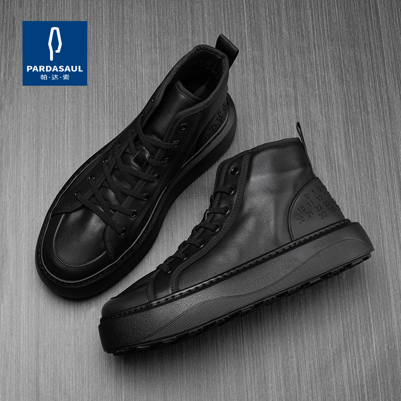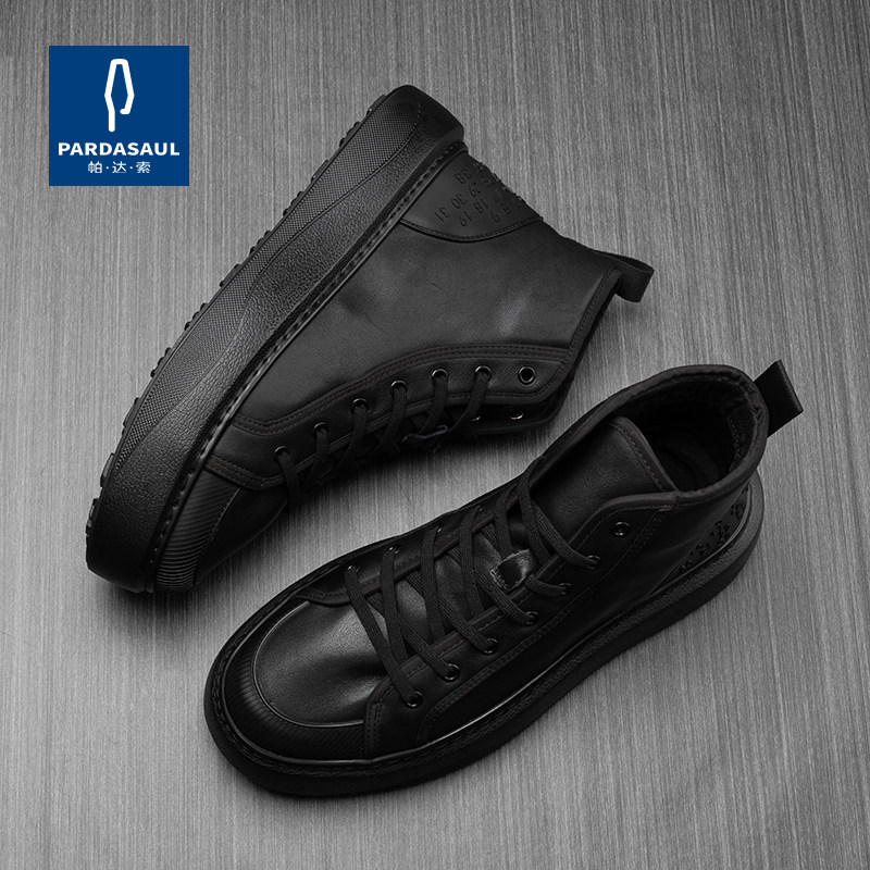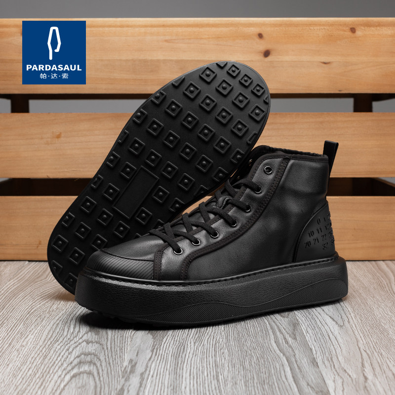帕达索2026冬季高帮板鞋男士皮鞋休闲系带流行加绒保暖棉鞋231127
