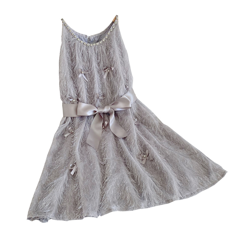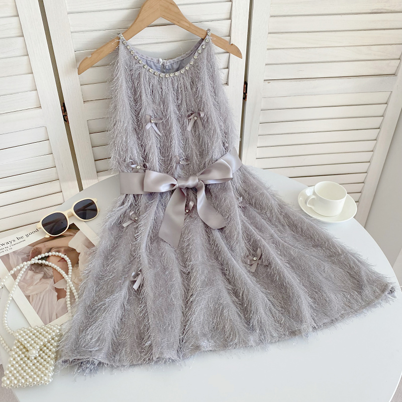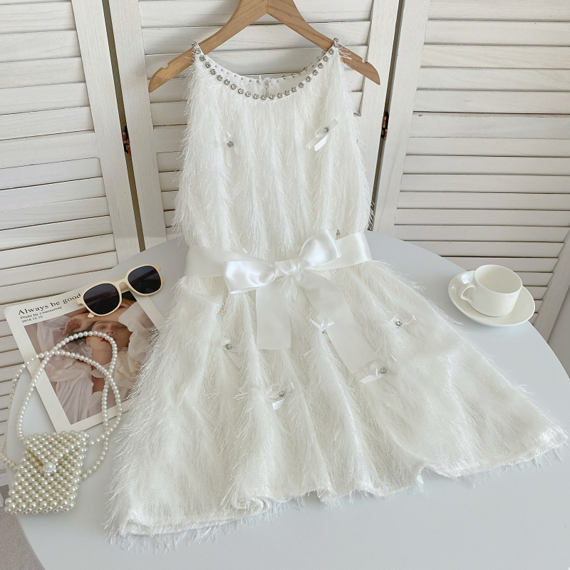 气质名媛风挂脖毛毛流苏宽松连衣裙女2023夏季法式小众A字短裙
