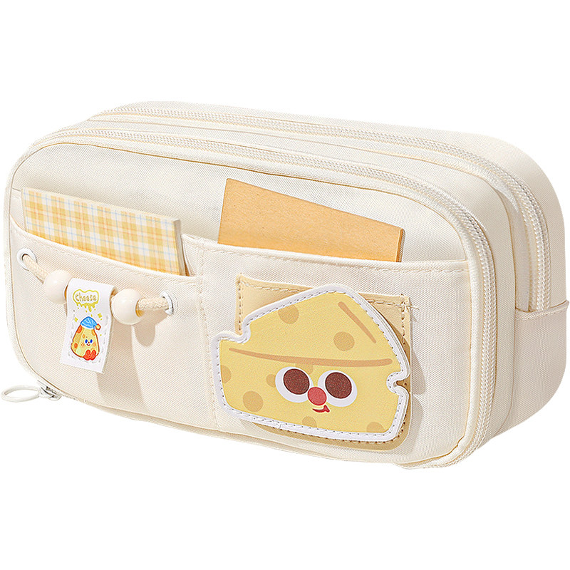 魔术贴随心换~可爱奶酪笔袋2026新款超火高颜值ins风大容量女生文具盒小学生女孩款铅笔盒初中男生2025铅笔袋