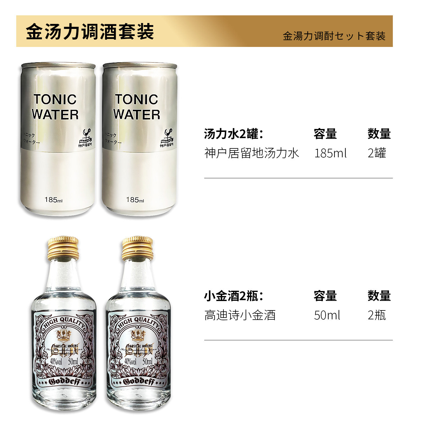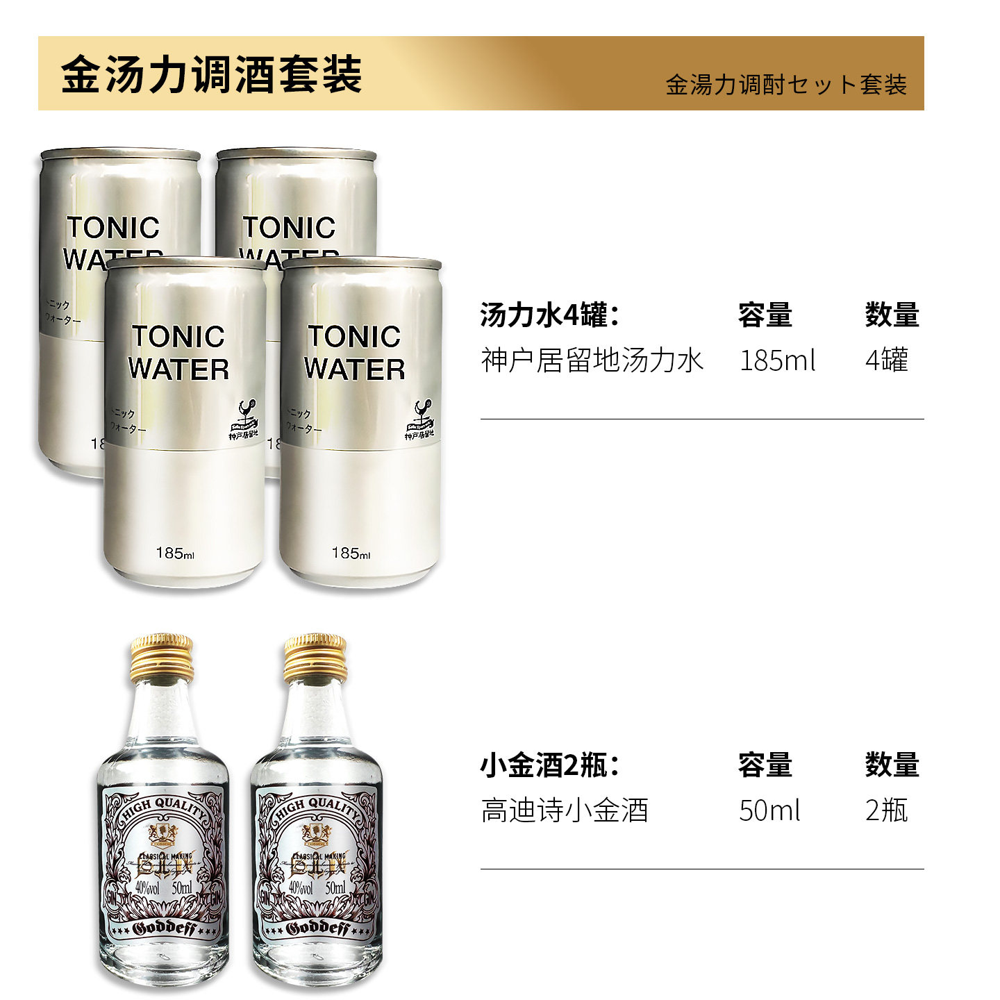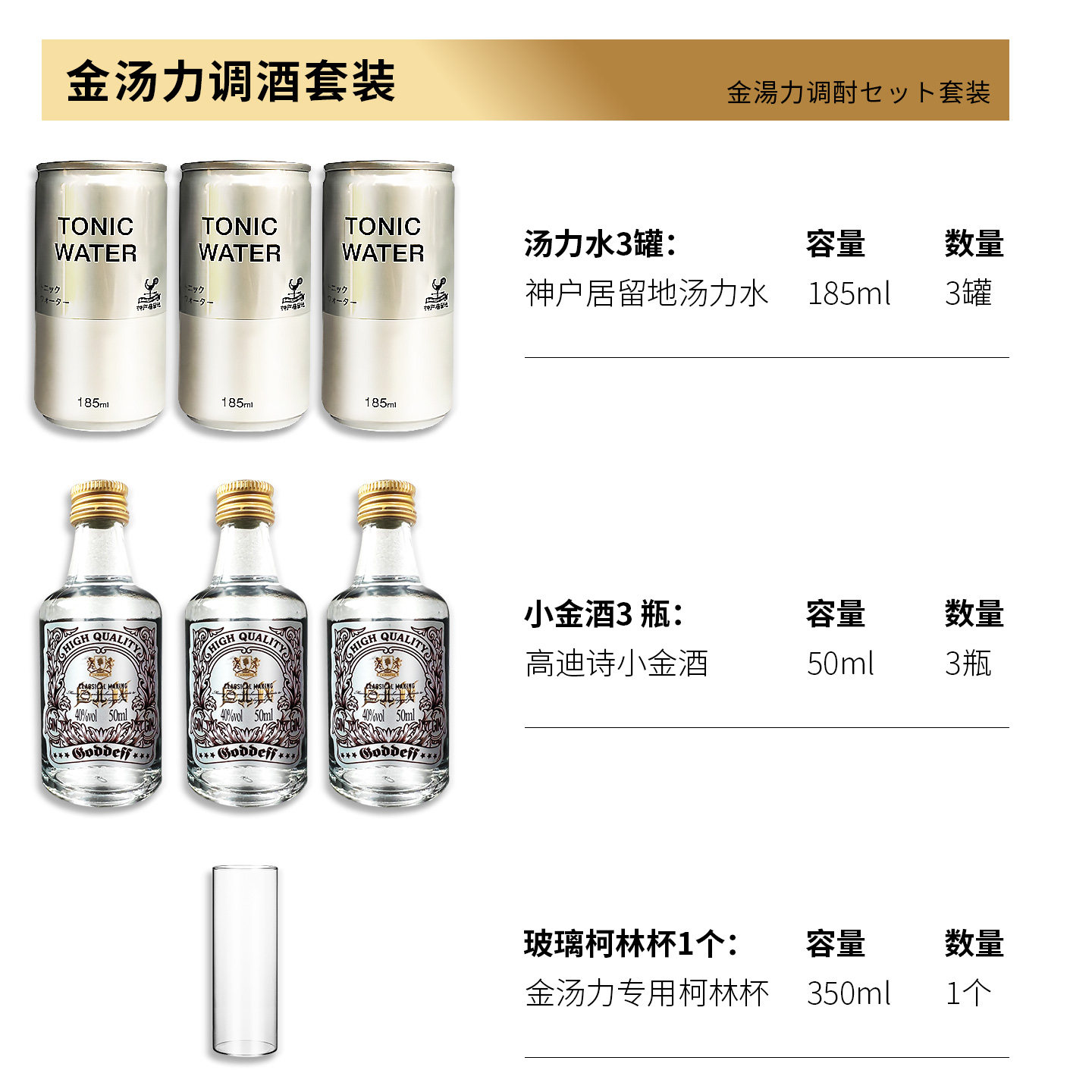 日本神户居留地汤力水金汤力调酒套装 汤力水小金酒柯林杯组合