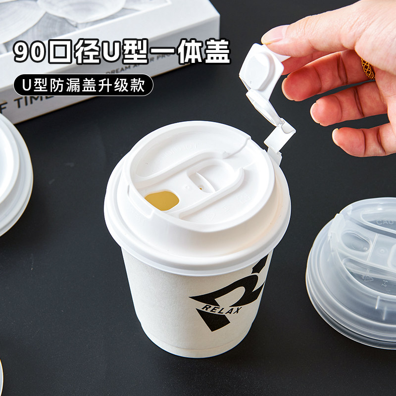 一次性咖啡杯盖网红塑料奶茶防漏外卖盖子连体盖90口径磨砂通用