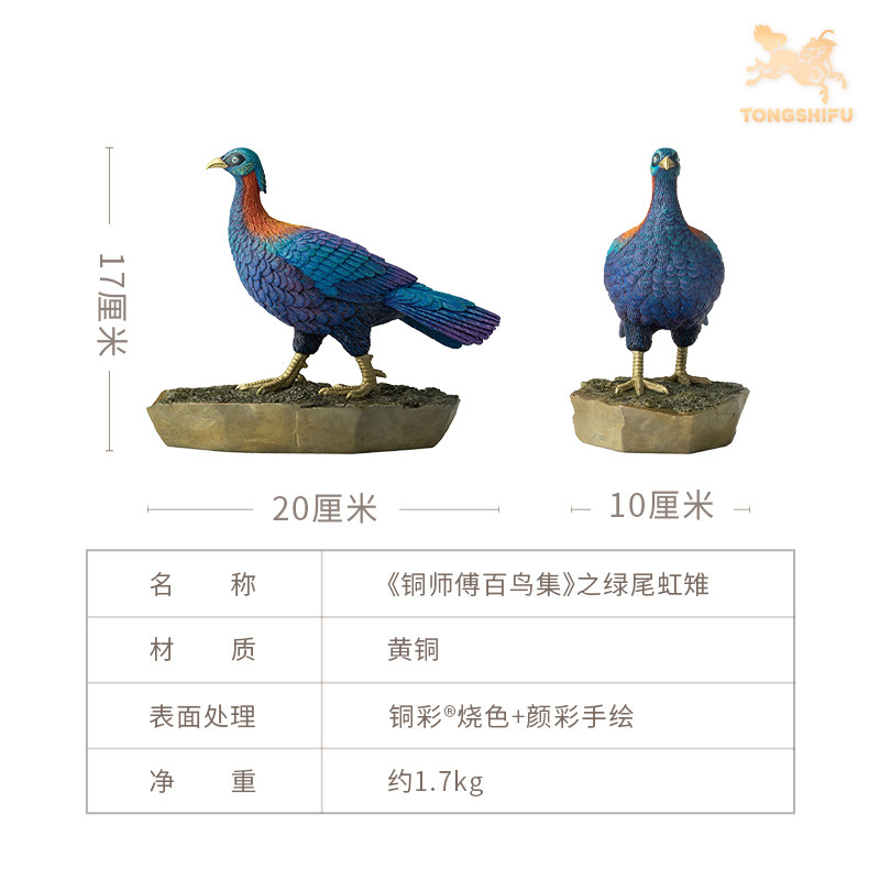 铜师傅 铜摆件《铜师傅百鸟集》之绿尾虹雉 家居饰品 桌面摆件