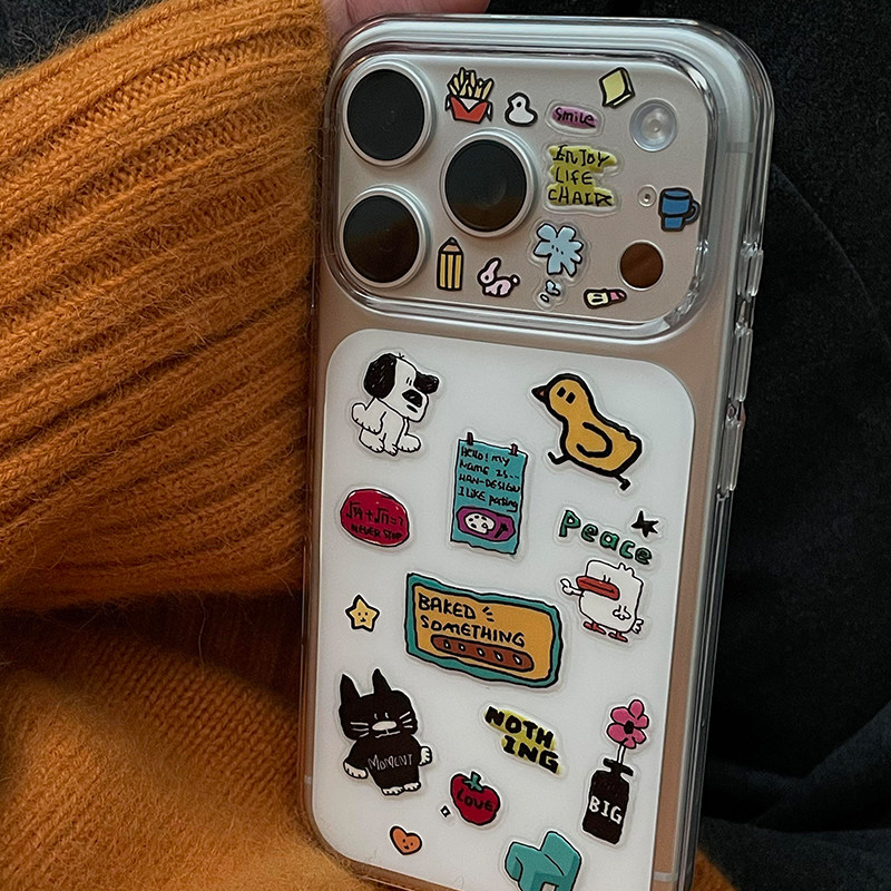 iphone17韩系ins简约手绘可爱小狗果冻贴diy手账手机壳平板装饰贴