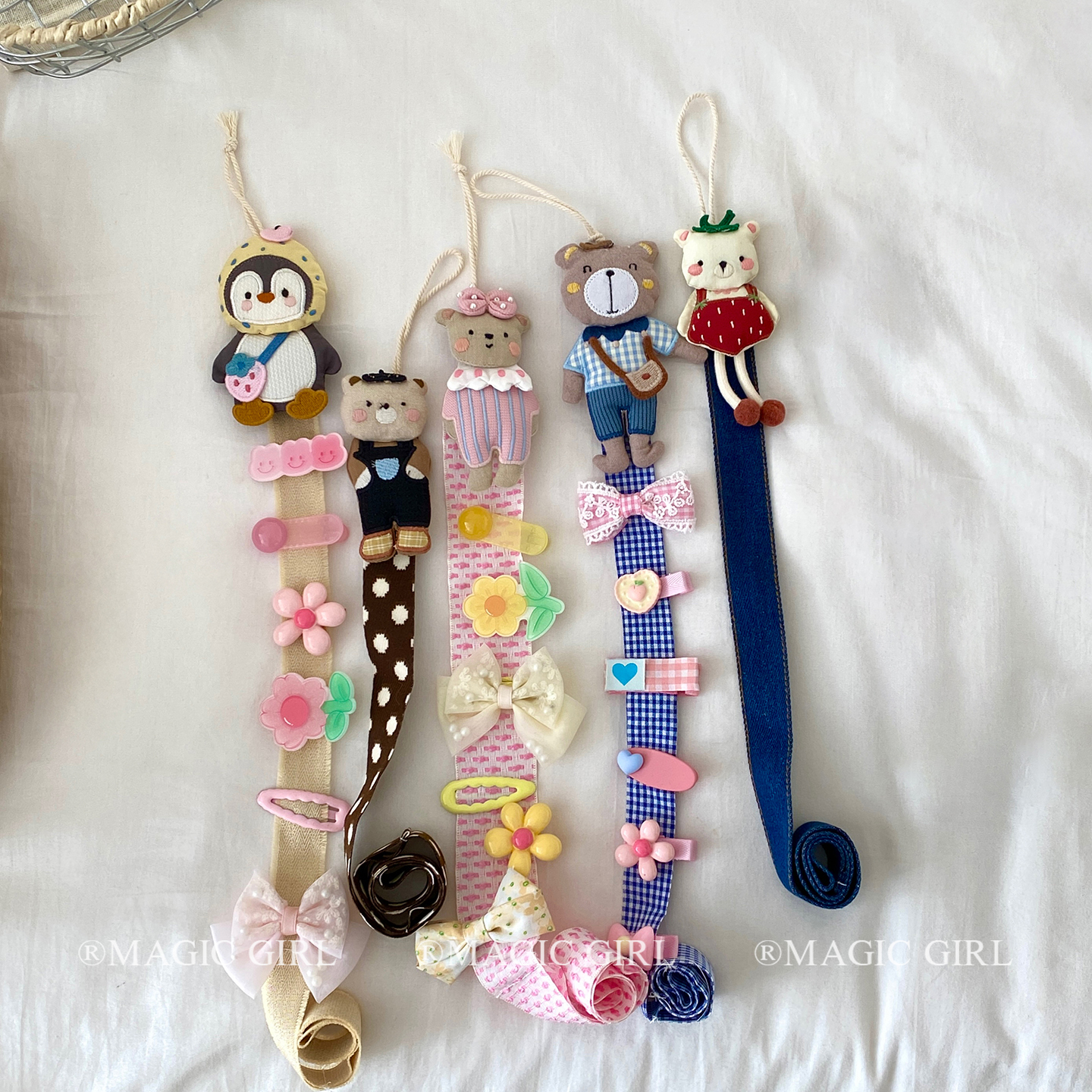 可爱卡通发饰发夹收纳带卡子壁挂绳发卡头饰整理神器夹子收纳绳子