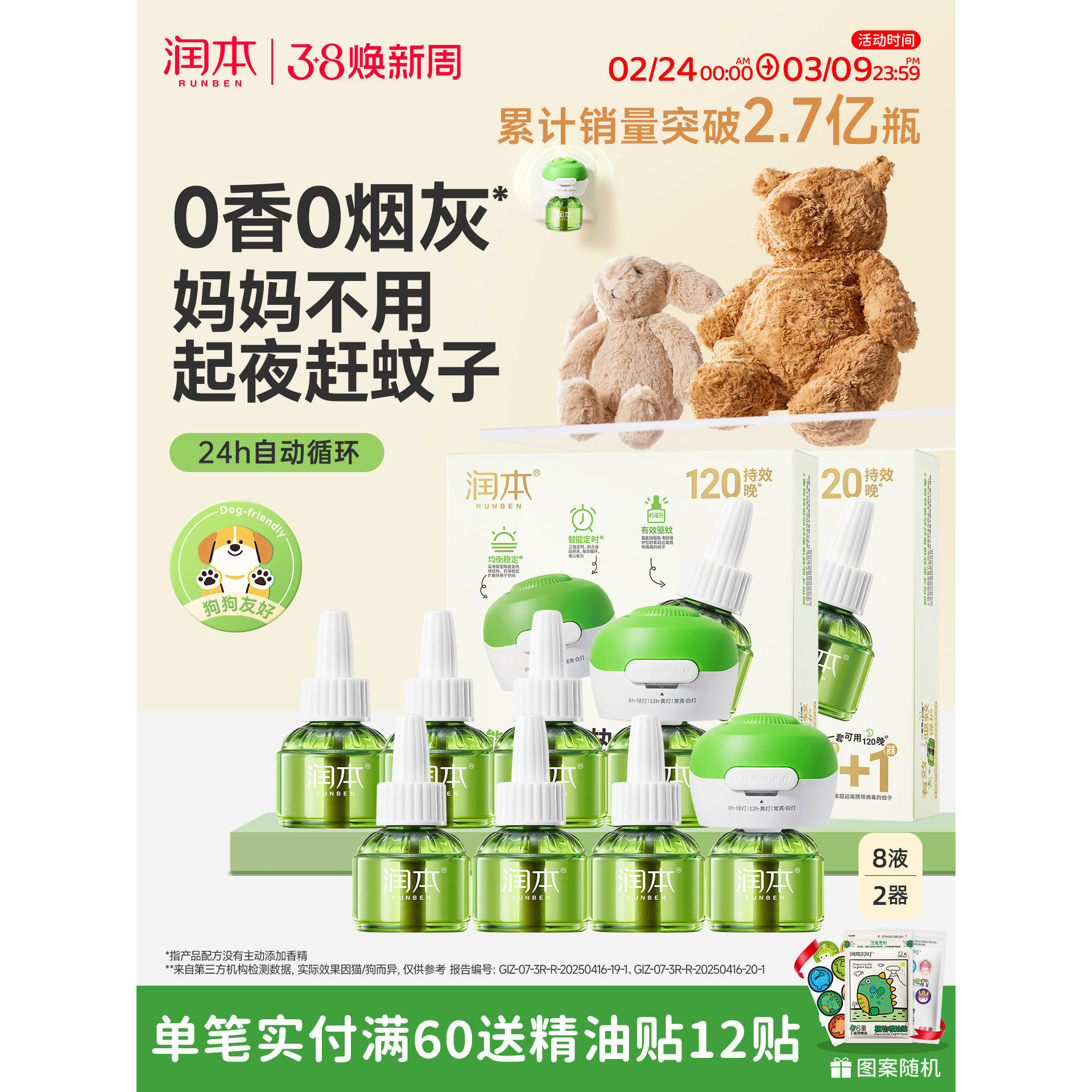 润本电热蚊香液无烟无味智能定时电蚊香器专用补充液防蚊液驱蚊液