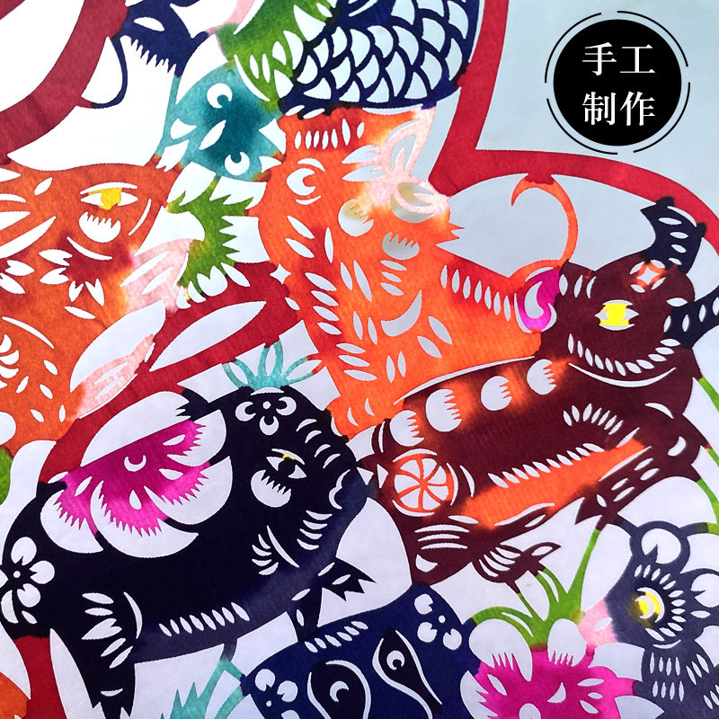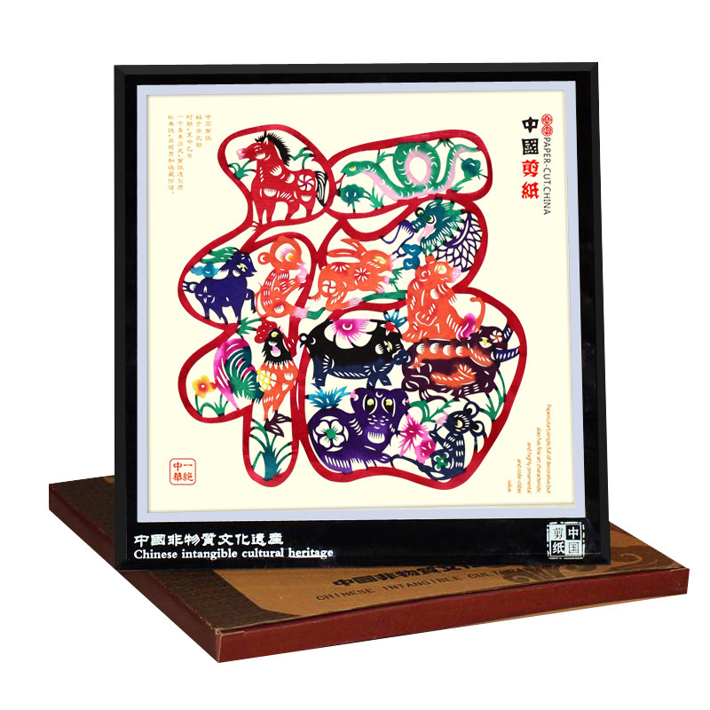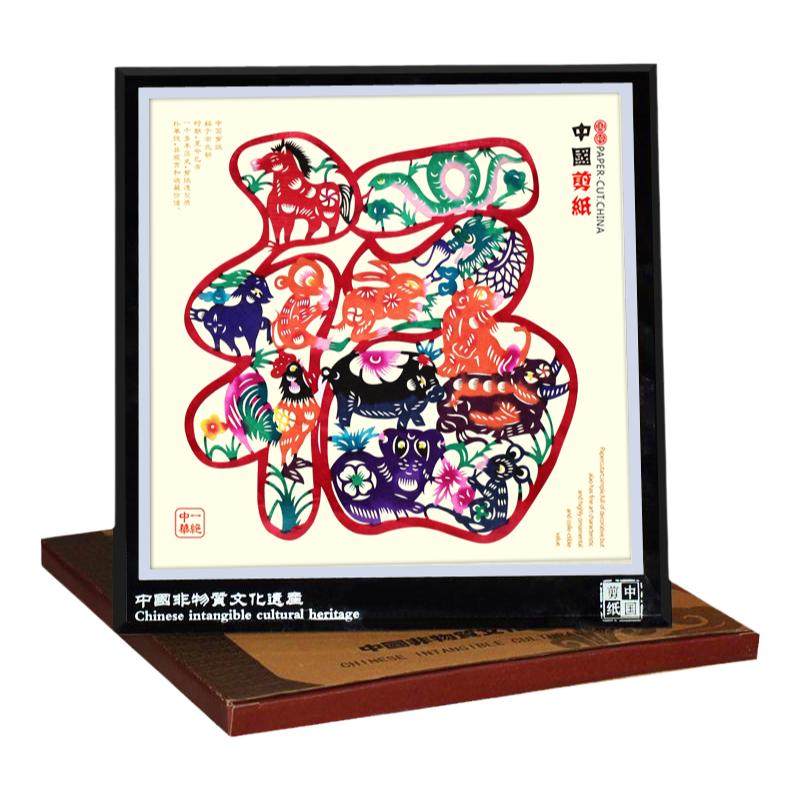 中国风特色手工艺大号玻璃镜框摆件装饰画彩色生肖纳福窗花礼品画