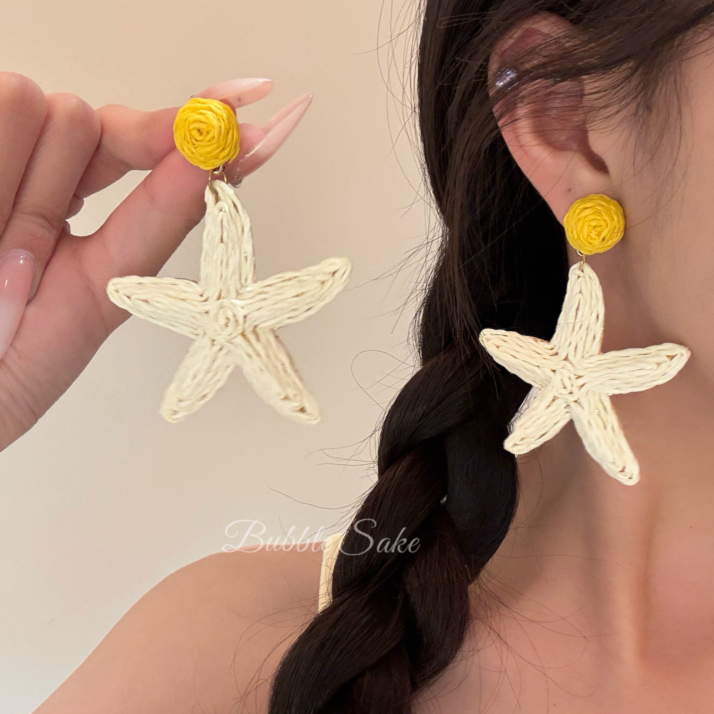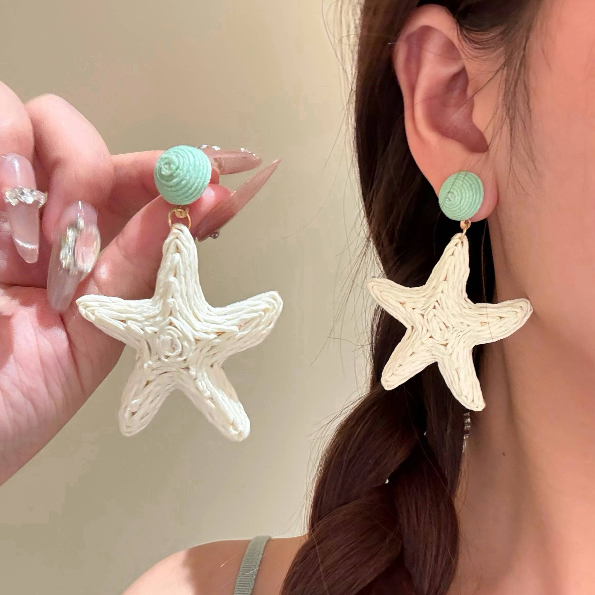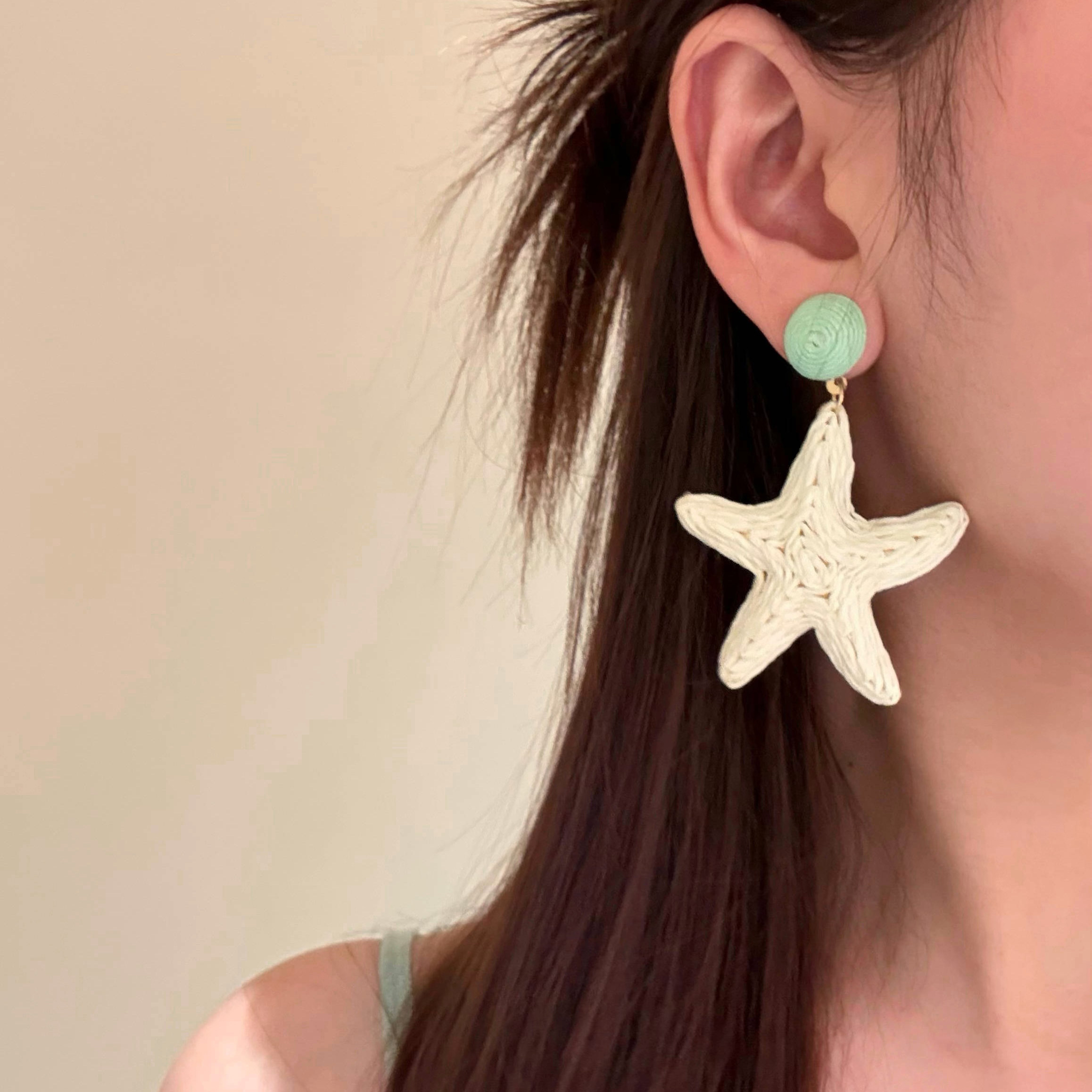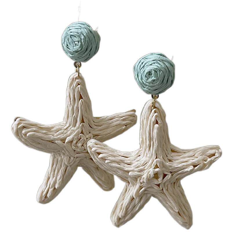 小岛假日~海边度假编织海星耳环女出游沙滩拍照耳环耳饰夸张耳夹