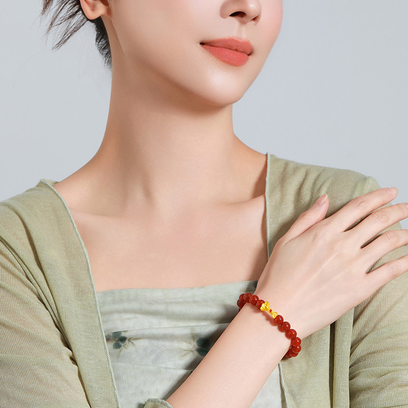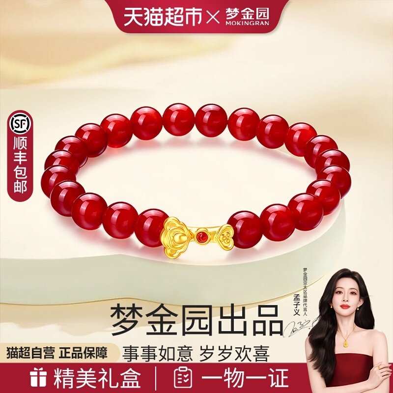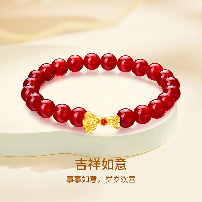 梦金园吉祥如意黄金手串气质百搭红玛瑙足金手串生日礼物送女友
