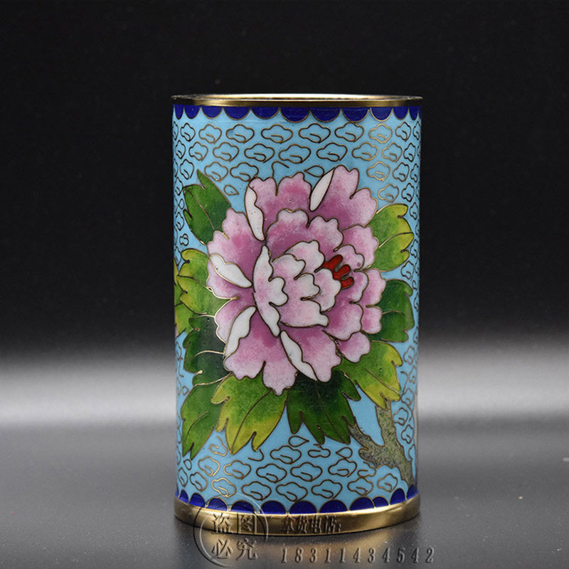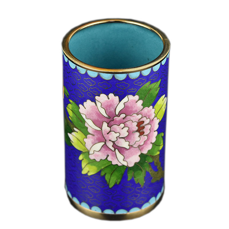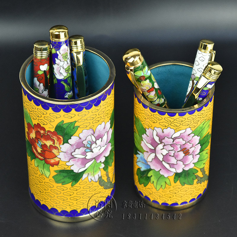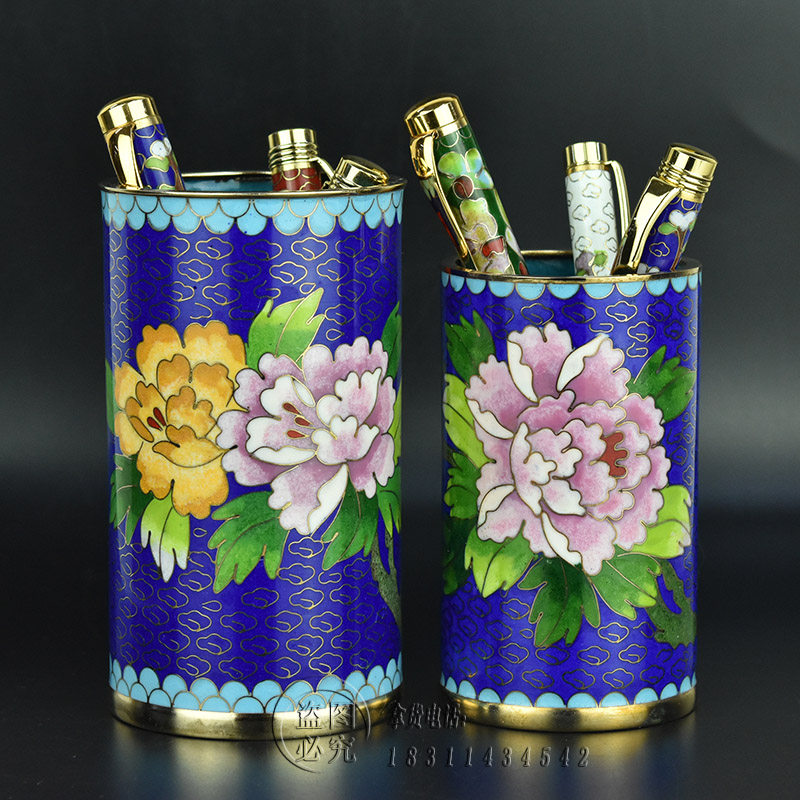 中国特色手工艺北京特产景泰蓝磨光笔筒铜胎掐丝珐琅出国办公礼品