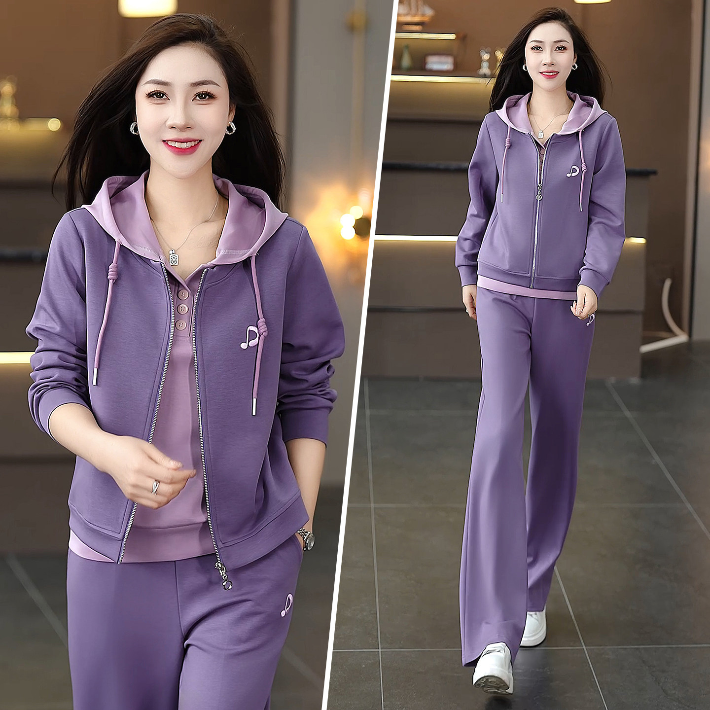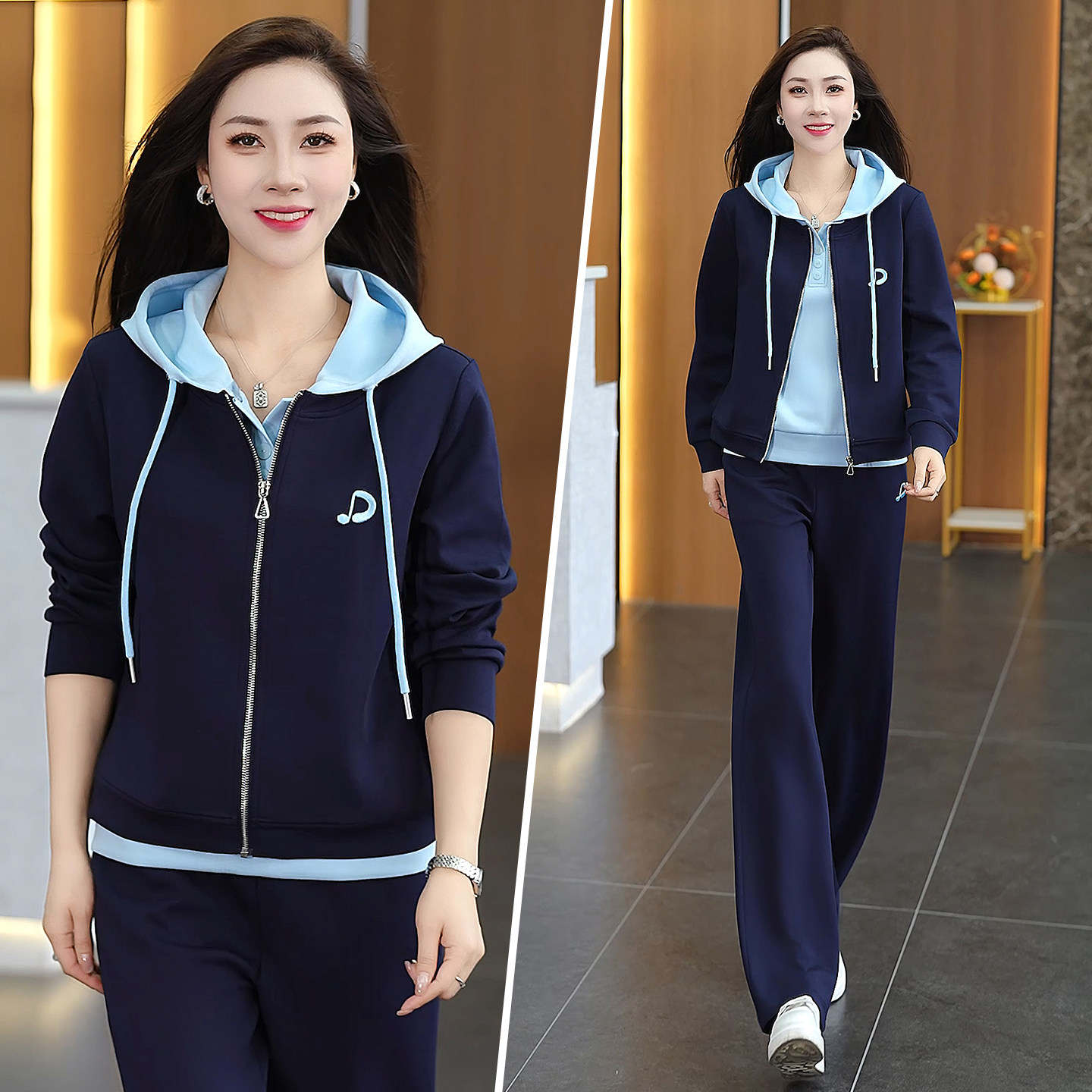 休闲运动套装女春秋2025新款长袖外套束脚裤旅游健身跑步服两件套