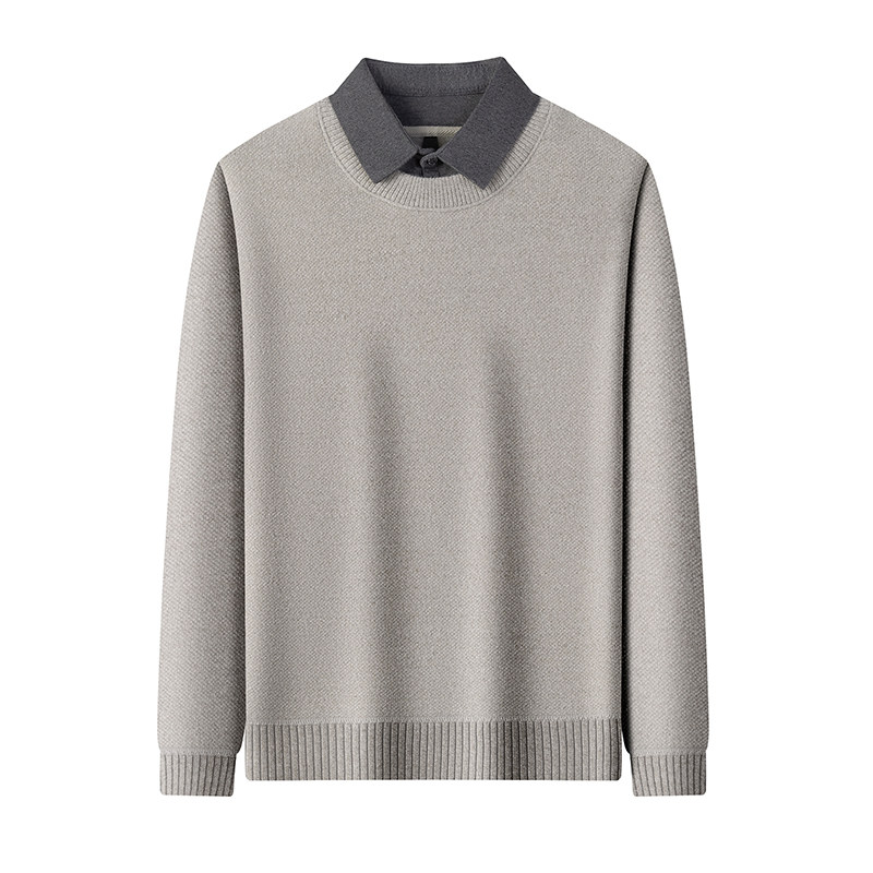 毛衣男假两件衬衫领雪尼尔加绒加厚秋冬季一体绒保暖针织打底衫男
