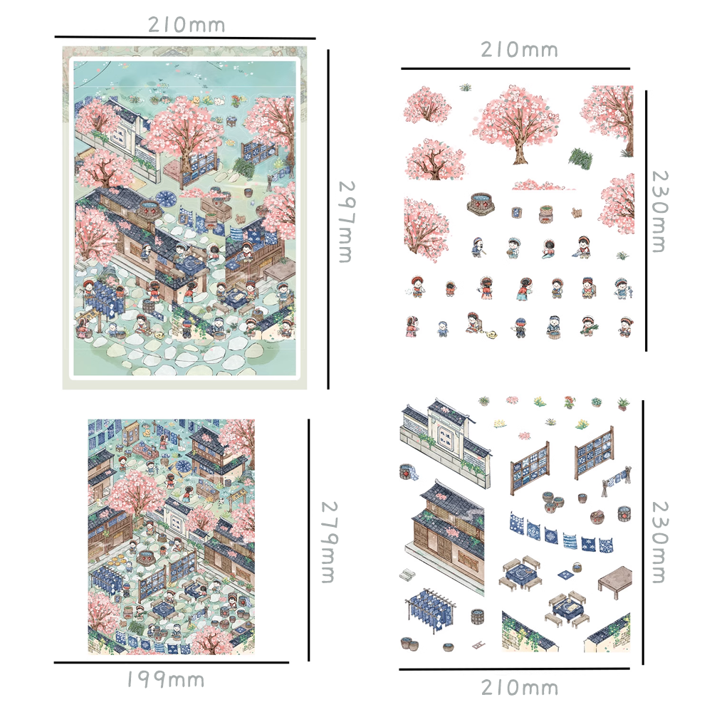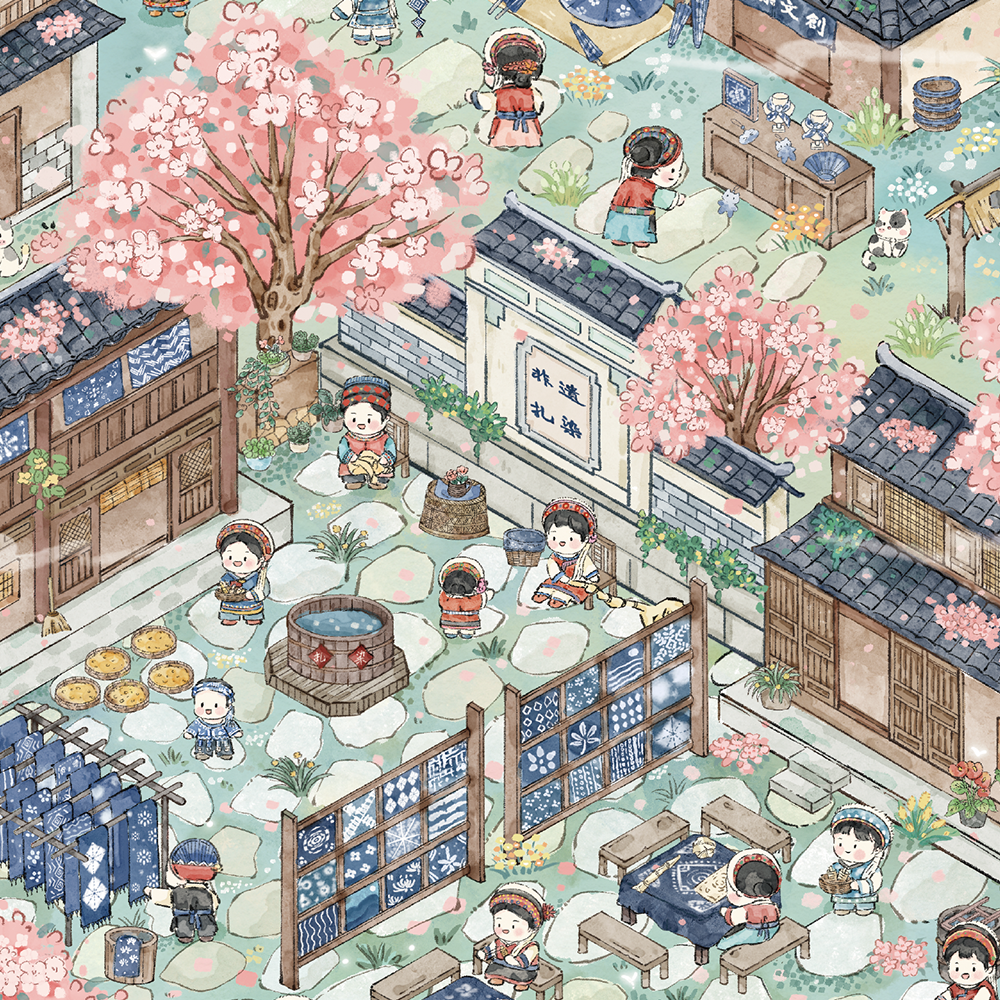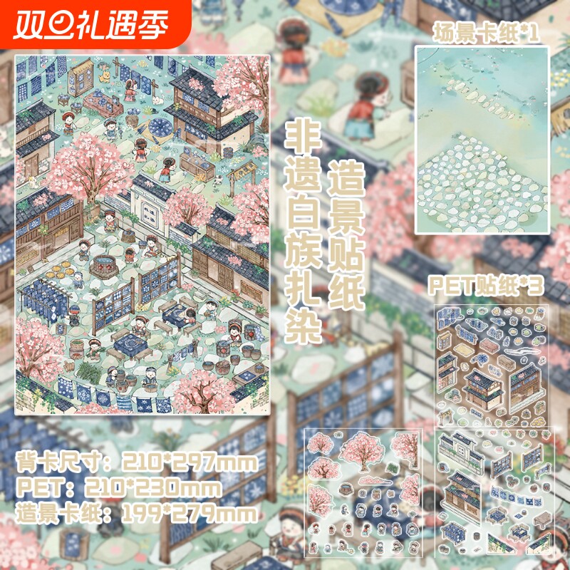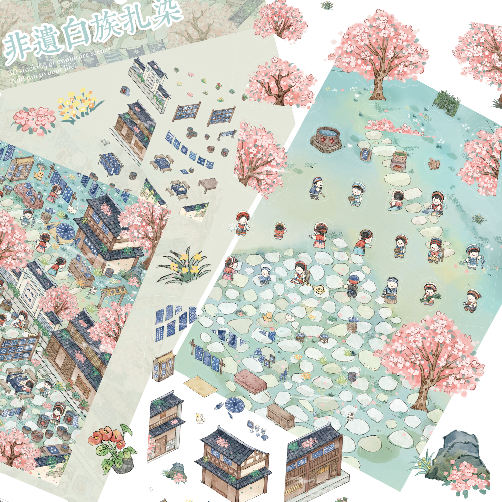 非遗白族扎染微缩场景造景diy装饰建筑国风贴纸