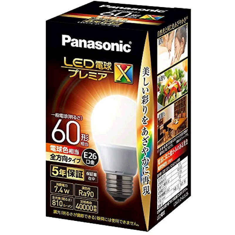 【日本直邮】松下LED灯泡 26mm/60w 白炽灯 全方位 密闭 LDA7LDGS