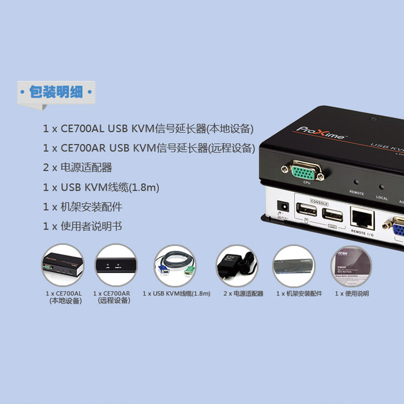 ATEN宏正VGA延长器CE700A USB KVM延长可达150m高清视频分辨率支持宽屏两组控制端信号延伸器 CE770咨询店长