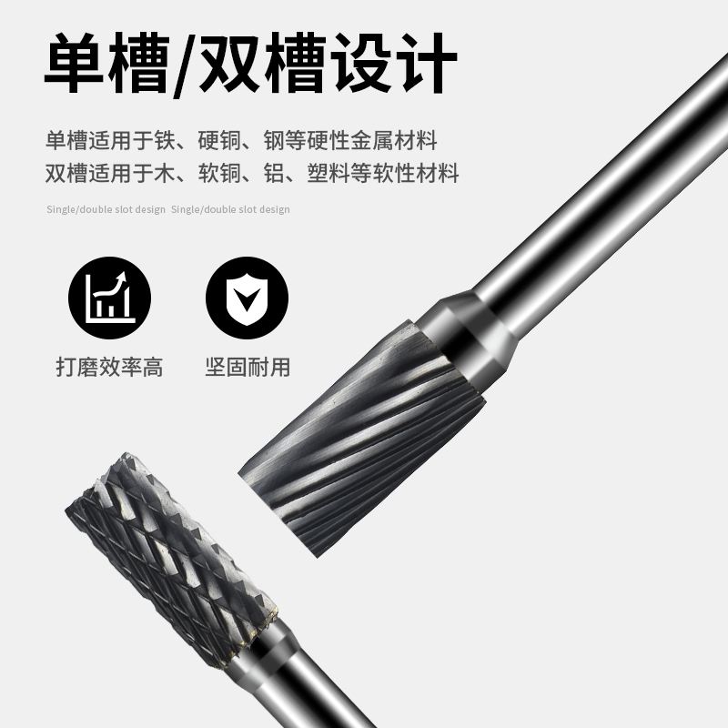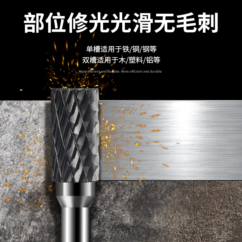 高堡硬质合金旋转锉钨钢打磨头金属木工雕刻圆柱形电动铣刀6mmA型