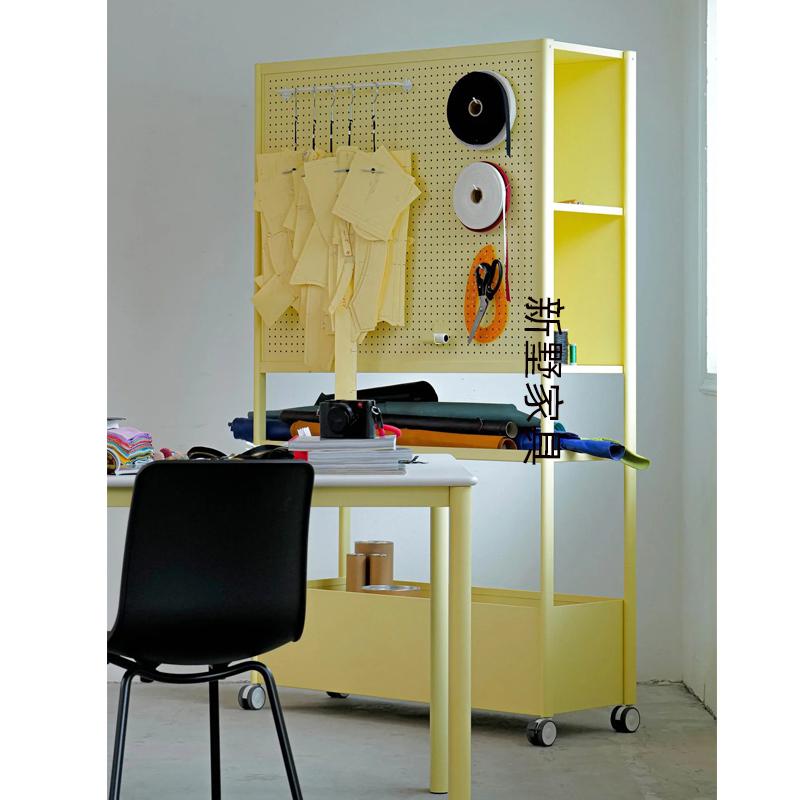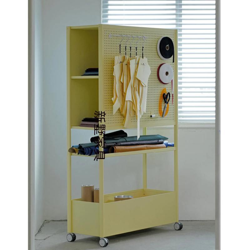 家用彩色置物架带洞洞板带轮可移动储物架收纳架落地多层金属货架