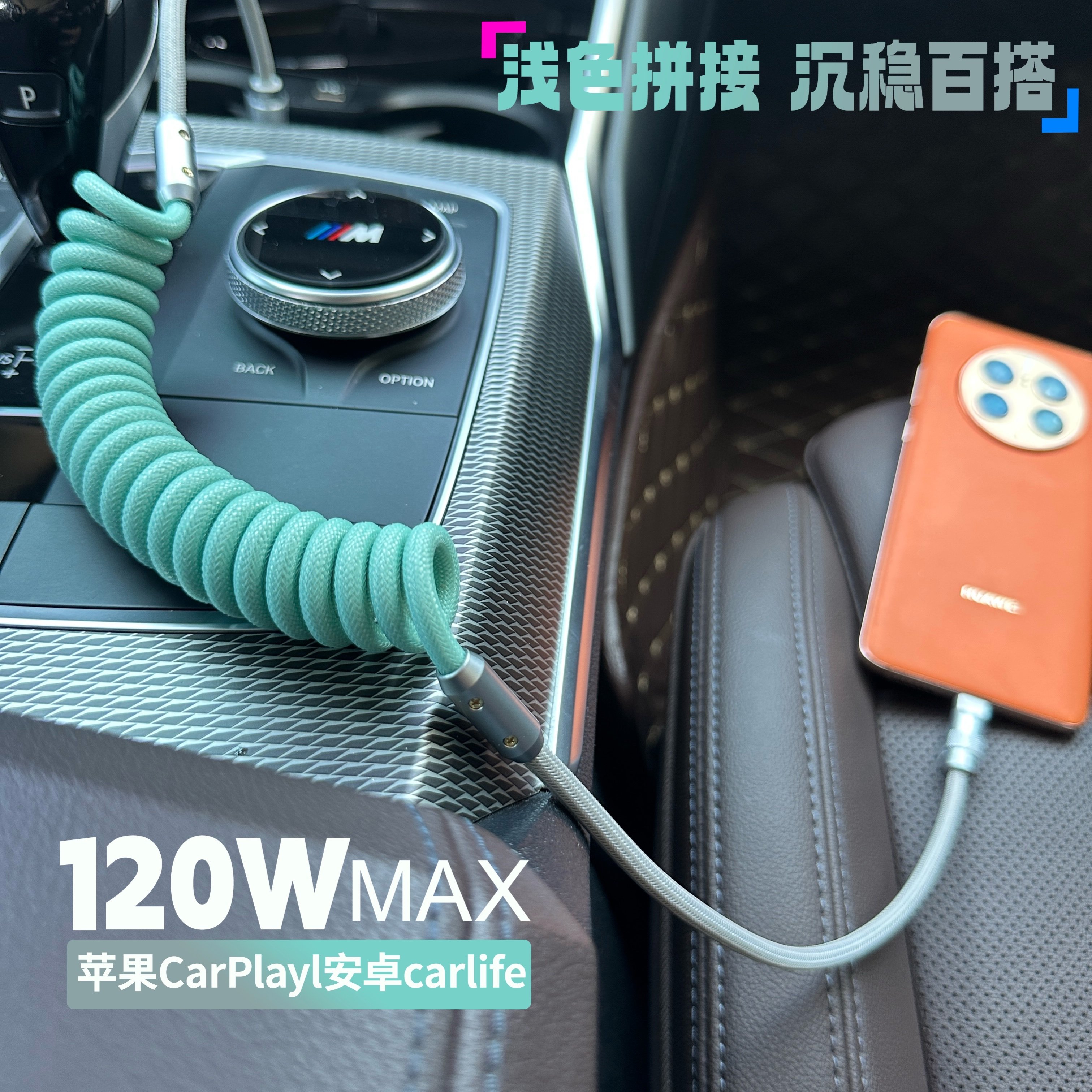 车载Carplay数据线弹簧PD超级快充typec伸缩车载充电线carlife汽车用品适用哈佛星愿海鸥朗逸速腾奔驰宝马