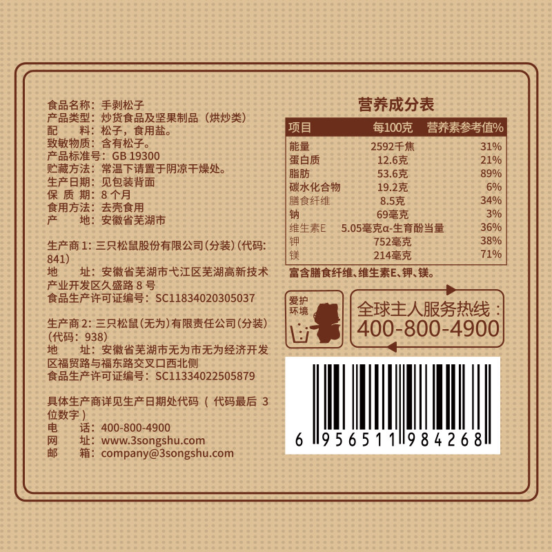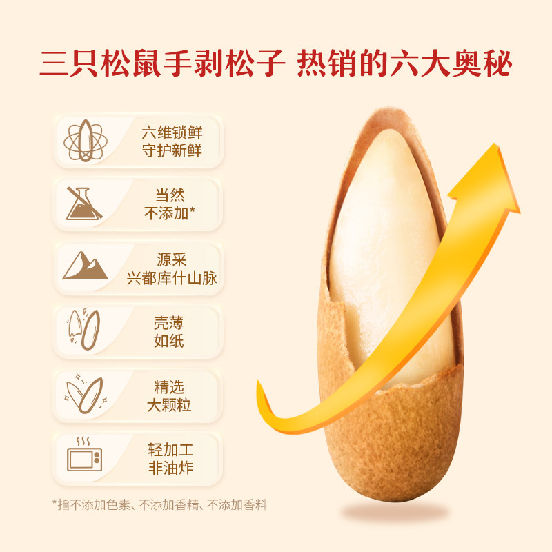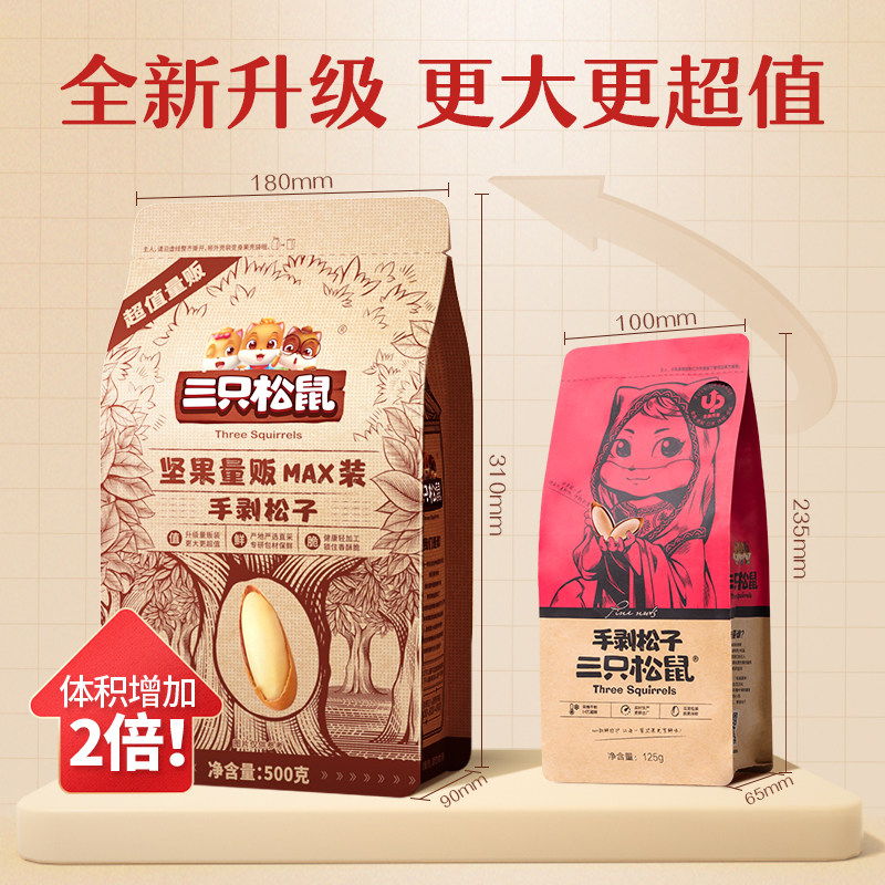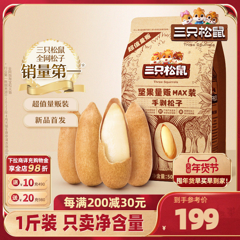 【三只松鼠_量贩手剥松子500g】巴西松子袋装坚果干果零食特产