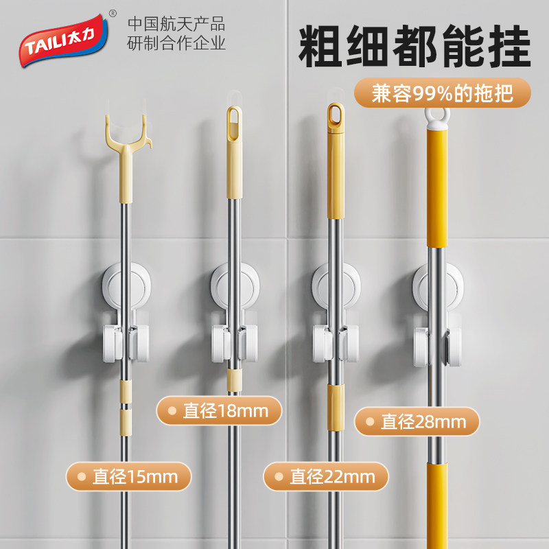 太力吸盘挂钩免打孔无痕真空厨房门后拖把毛巾粘钩浴室收纳整理架