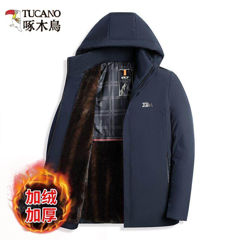 啄木鸟冬季新款商务休闲皮草上衣中老年保暖中长款外套帽子可脱卸